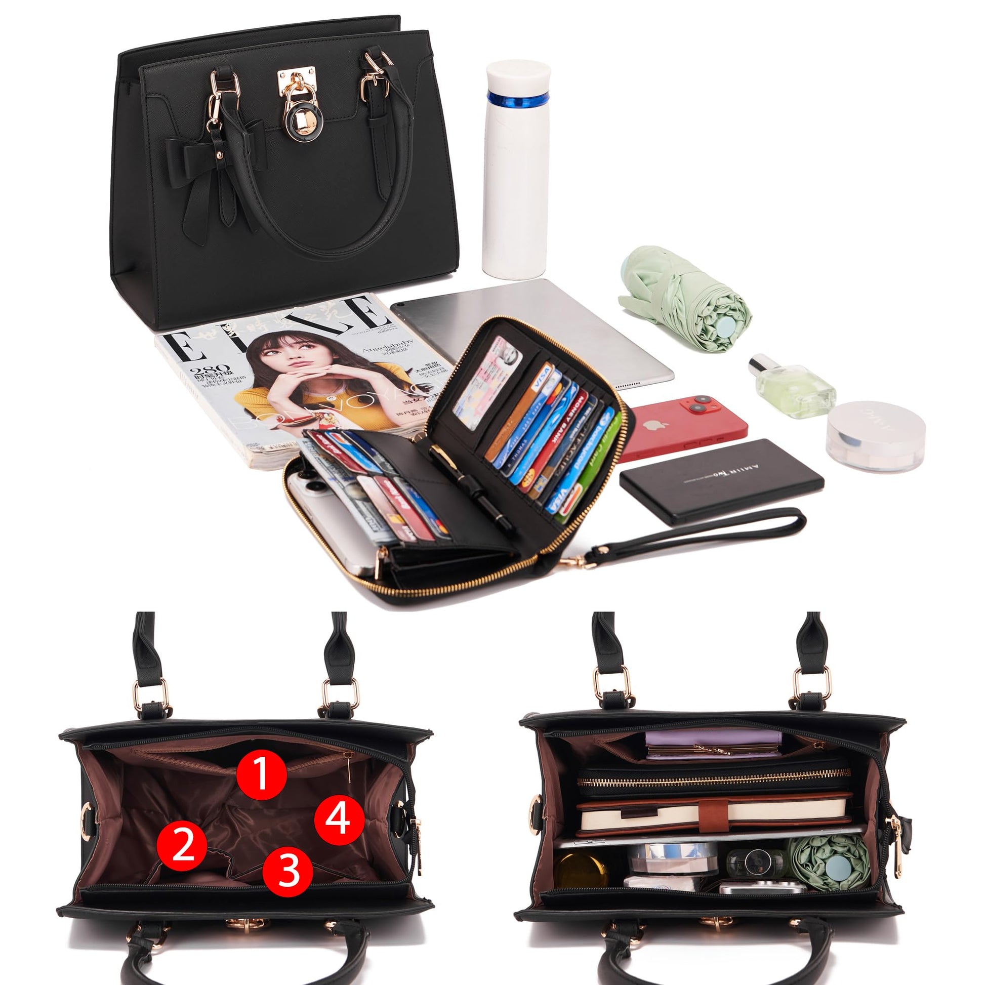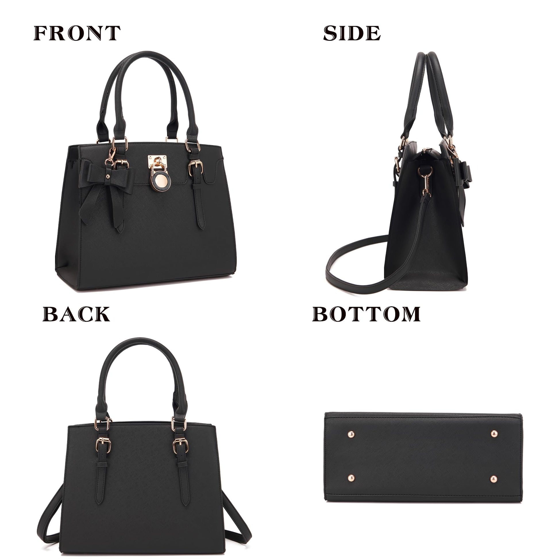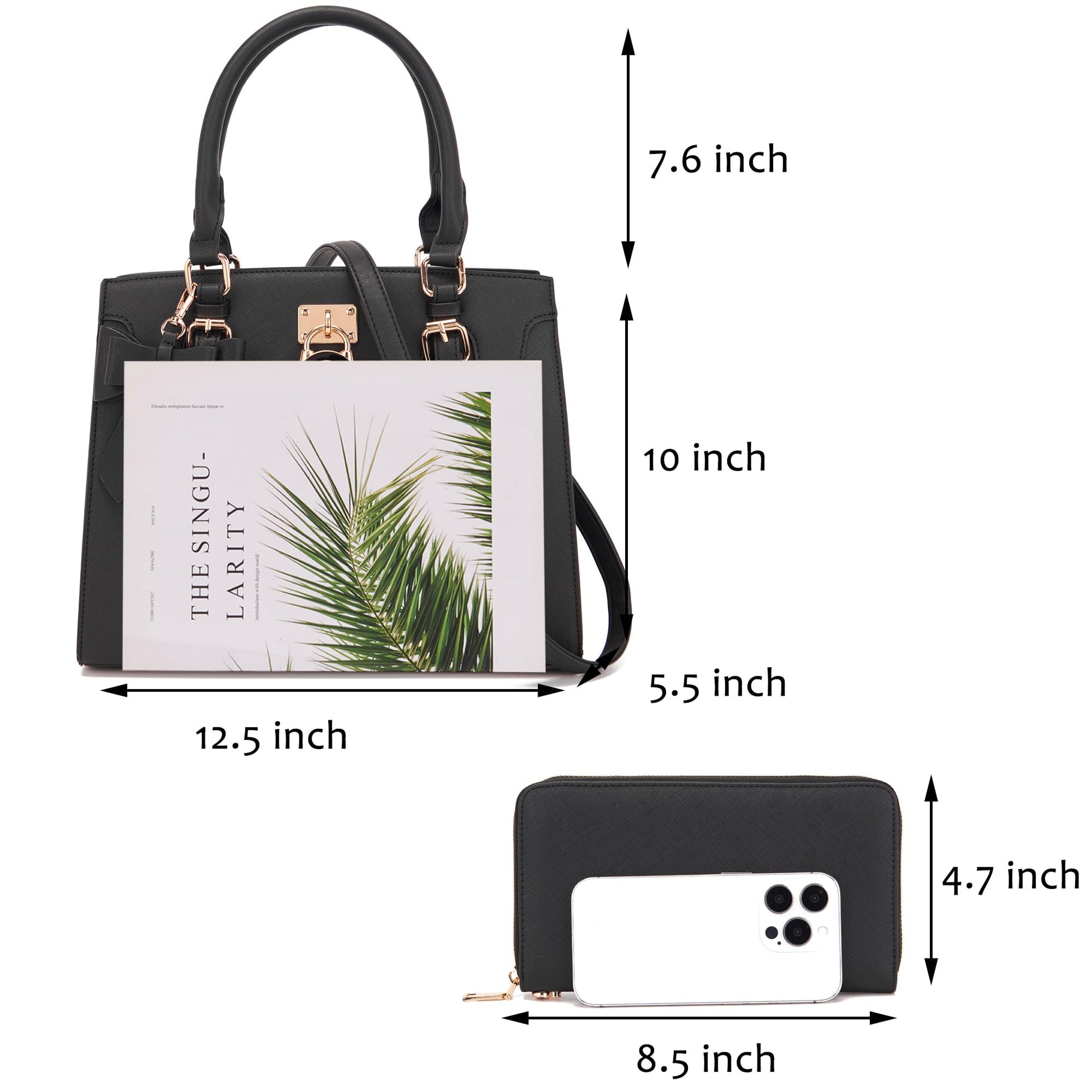 Qiyuer Women Purses And Handbags Set Ladies Top Handle Satchel Tote Shoulder Work Bag With Matching Clutch Wallet 2PCS Black