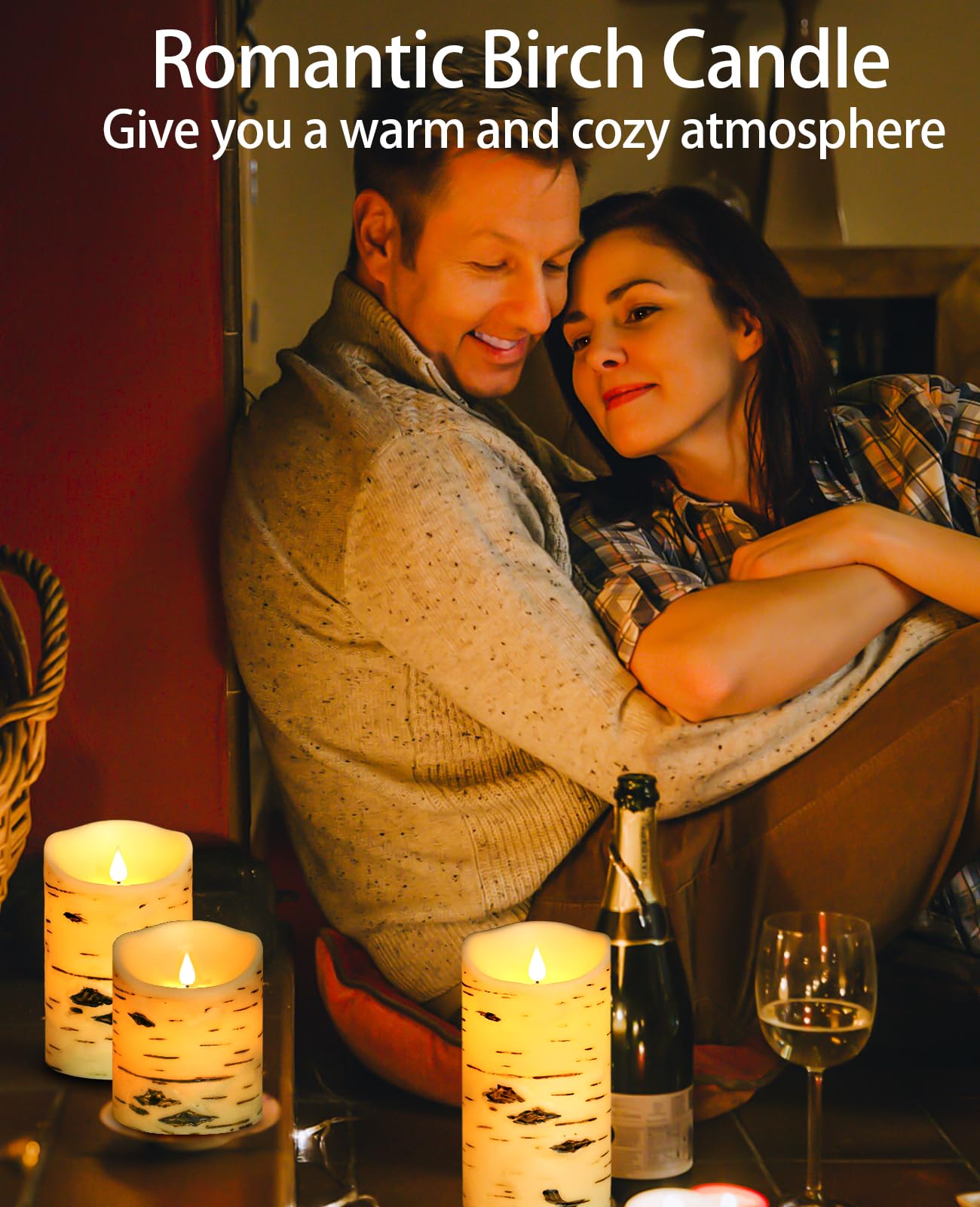 - Realistic birch design: Each flameless flickering candle is inserted with LED lights with a 3D wick to give you a rustic vibe.