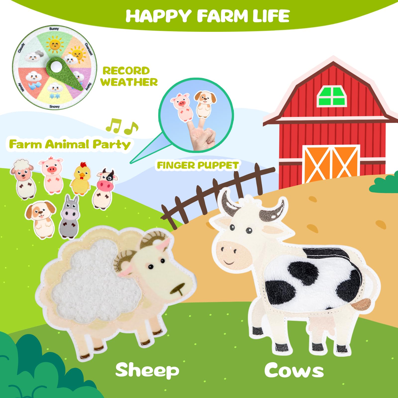 - FARM THEME BUSY BOOK - Embark on a farmer's busy day with Quanquer Montessori Farm Theme Busy Board! From dressing to preparing dinner, each activity fosters essential skills in a fun, hands-on manner. With 8 engaging pages and 18 activities, this farm story busy book sparks creativity while enhancing 18 months+ toddlers' hand-eye coordination, logical thinking, and self-directed learning