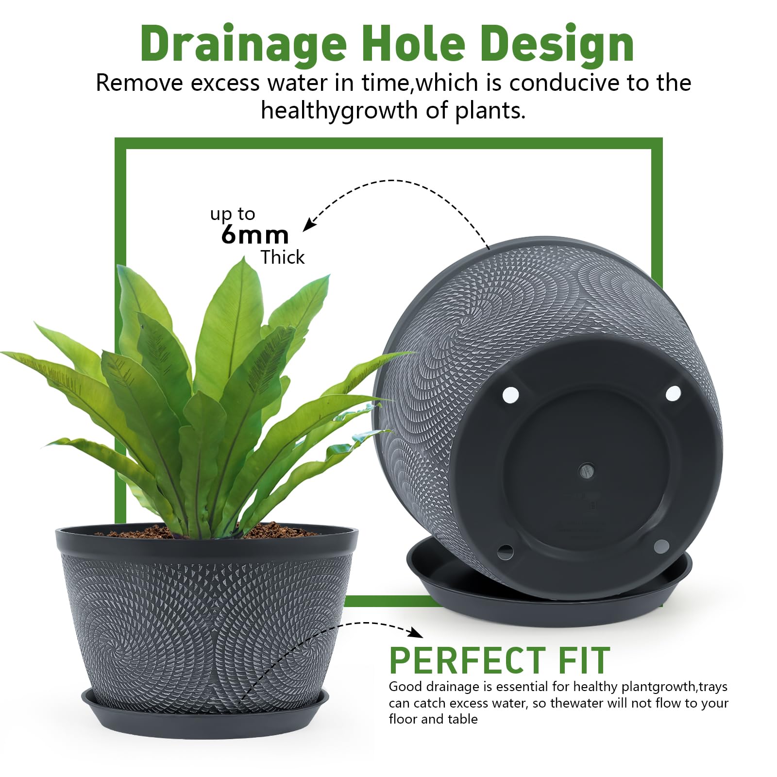 - 【Excellent Drainage and Tray】These lightweight plastic flower pots come with multiple drainage holes in the bottom to let exceed water easily flow out to help prolong the life of your plants, and the saucers are provided to hold just the right amount of water. Our classic 3 packs of 10 inch plant pot could create a healthy living environment for your plants.