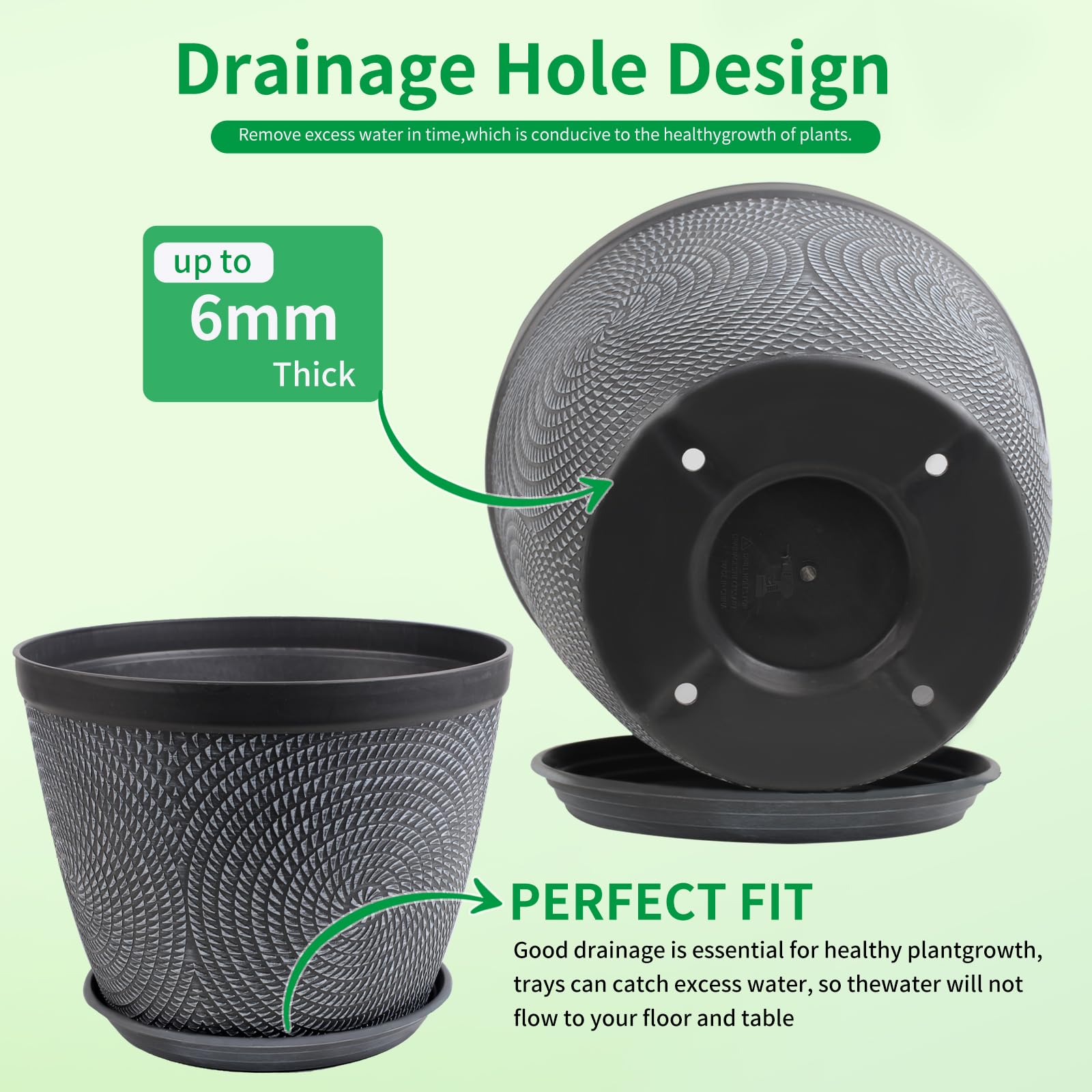 - 【Modern Circle Pattern】The flower pot is designed with a 3D imitation ceramic plastic textured round rope pattern add a lively and modern feeling, brings out a modern stylish visual representation for any home/office decor without any sense of violation. Enhance your space with these planters and watch your plants flourish.
