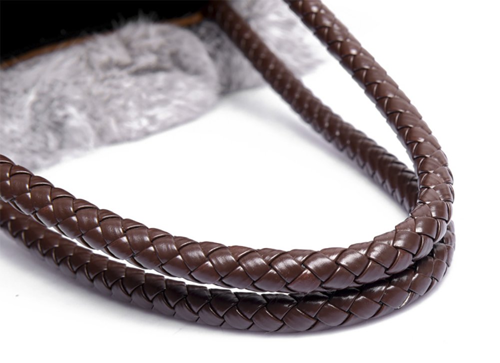 QZUnique Faux Fur Bucket Handbag Women's Drawstring Fur Crossbody Bag Shoulder Tote Bag
