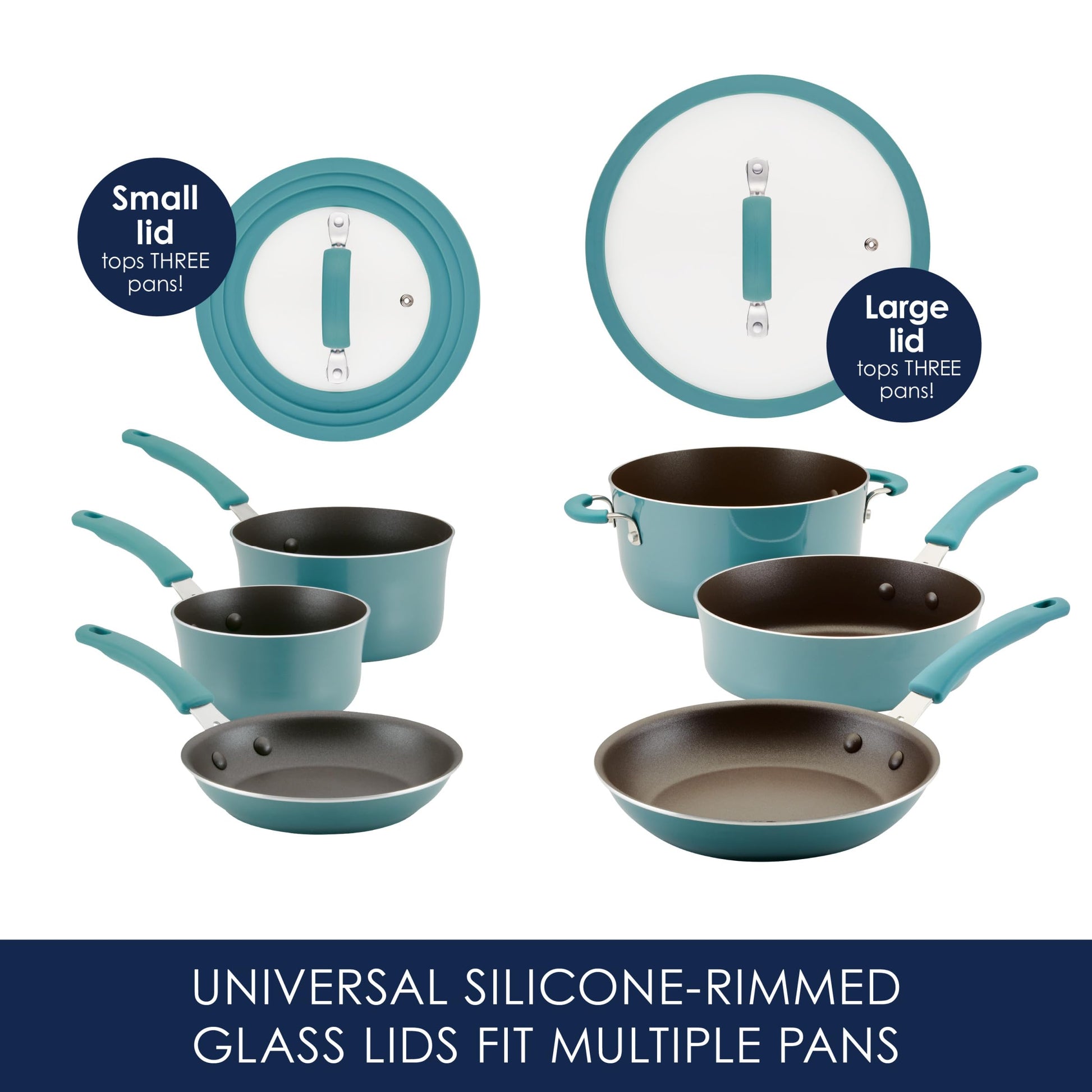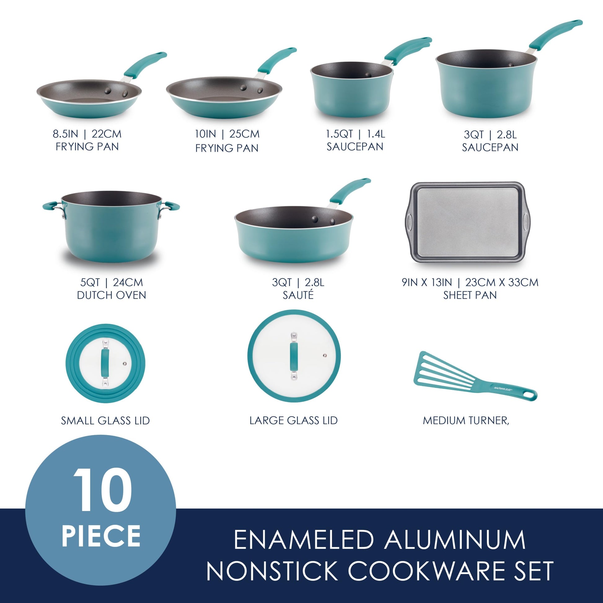Rachael Ray Cook + Create Nonstick Cookware/Pots and Pan Set, 10 Piece, Agave Blue
