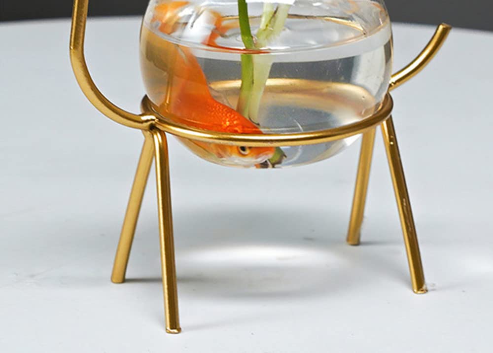 The metal frame is made of iron art, and the surface is gold-plated vase is made of top quality borosilicate glass