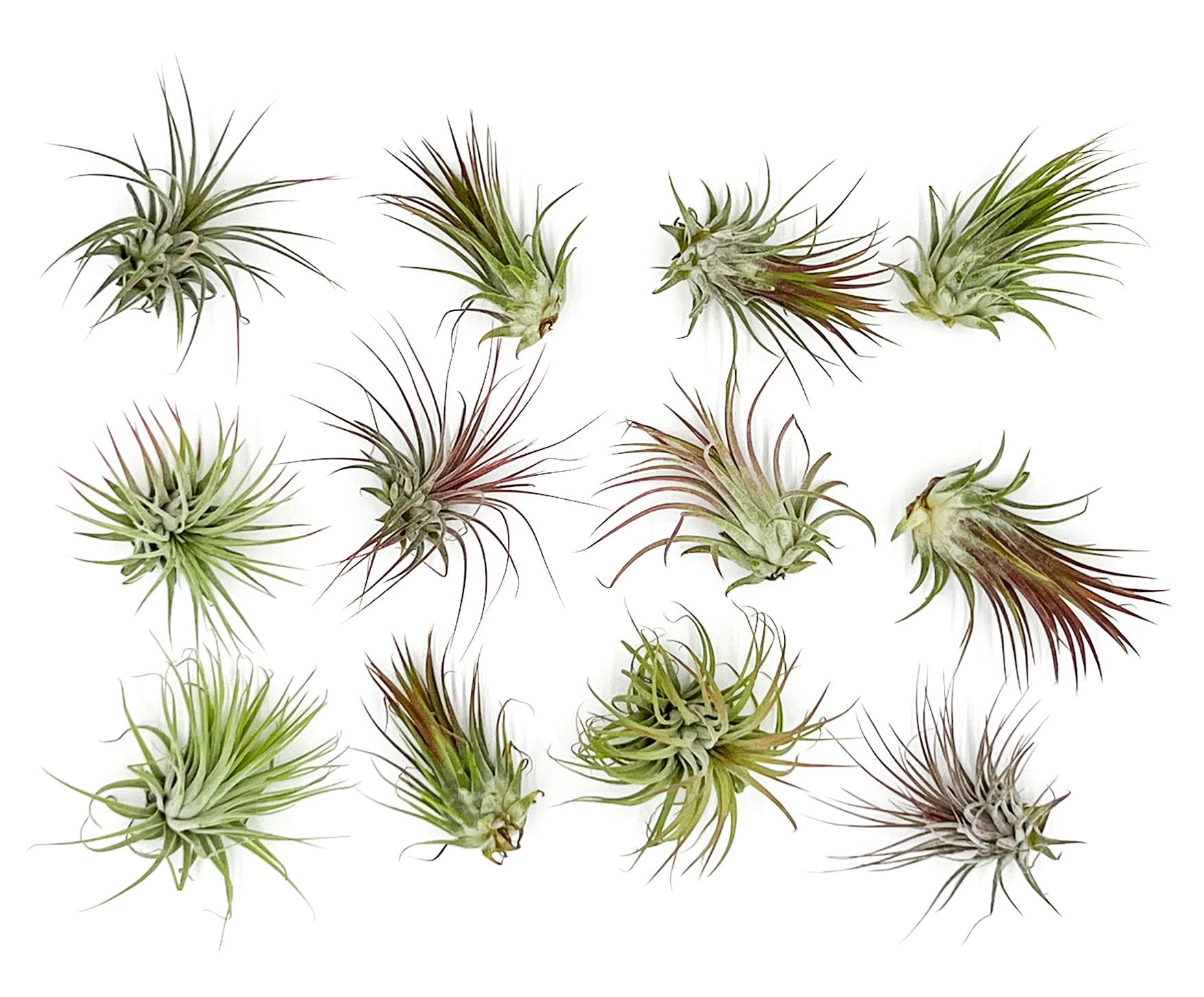- LIVE AIR PLANTS: ragnaroc 12 Pack air plants are 1-3 inches tall and 1-2 inches wide and come with a collectible care card in 100% recyclable gift-ready packaging. The plants will vary in color and will not always arrive flowering with red or purple color. Tillandsia Ionantha air plants typically bloom 2-3 times a year. Color will change with exposure to light. The air plant set may arrive in green - with fertilizer and bright light they will turn red and start flowering.