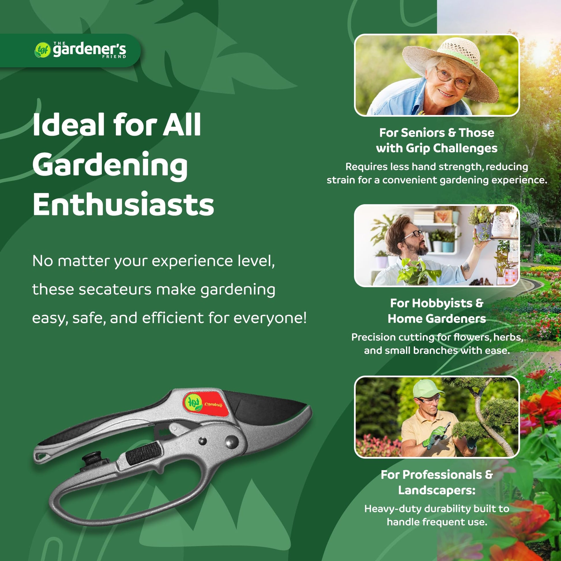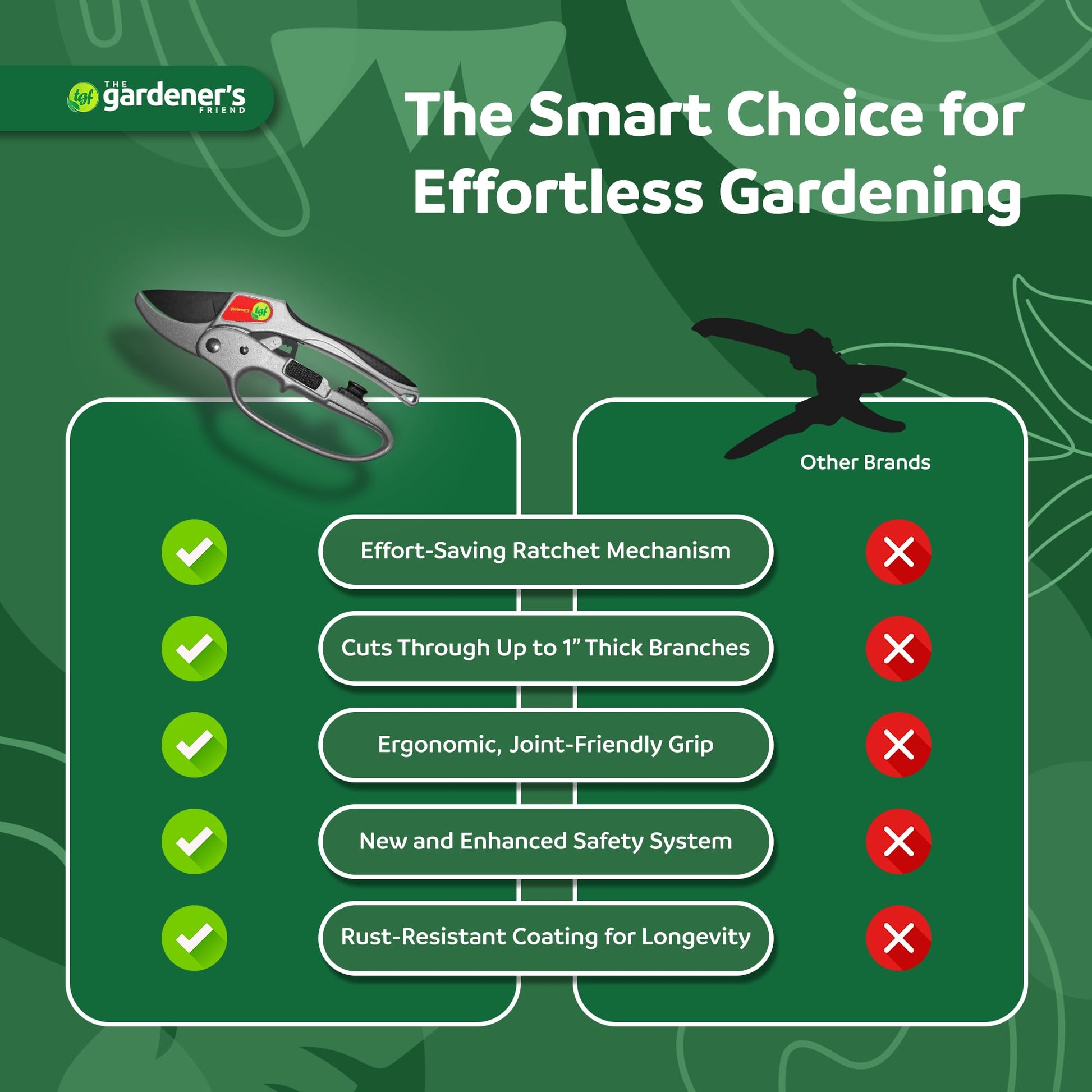 - Strength-Boosting Shears: boost your cutting power with ratchet garden shears for pruning, trimming, and harvesting plants. Your TGF anvil pruners help you achieve cleaner cuts with less strain