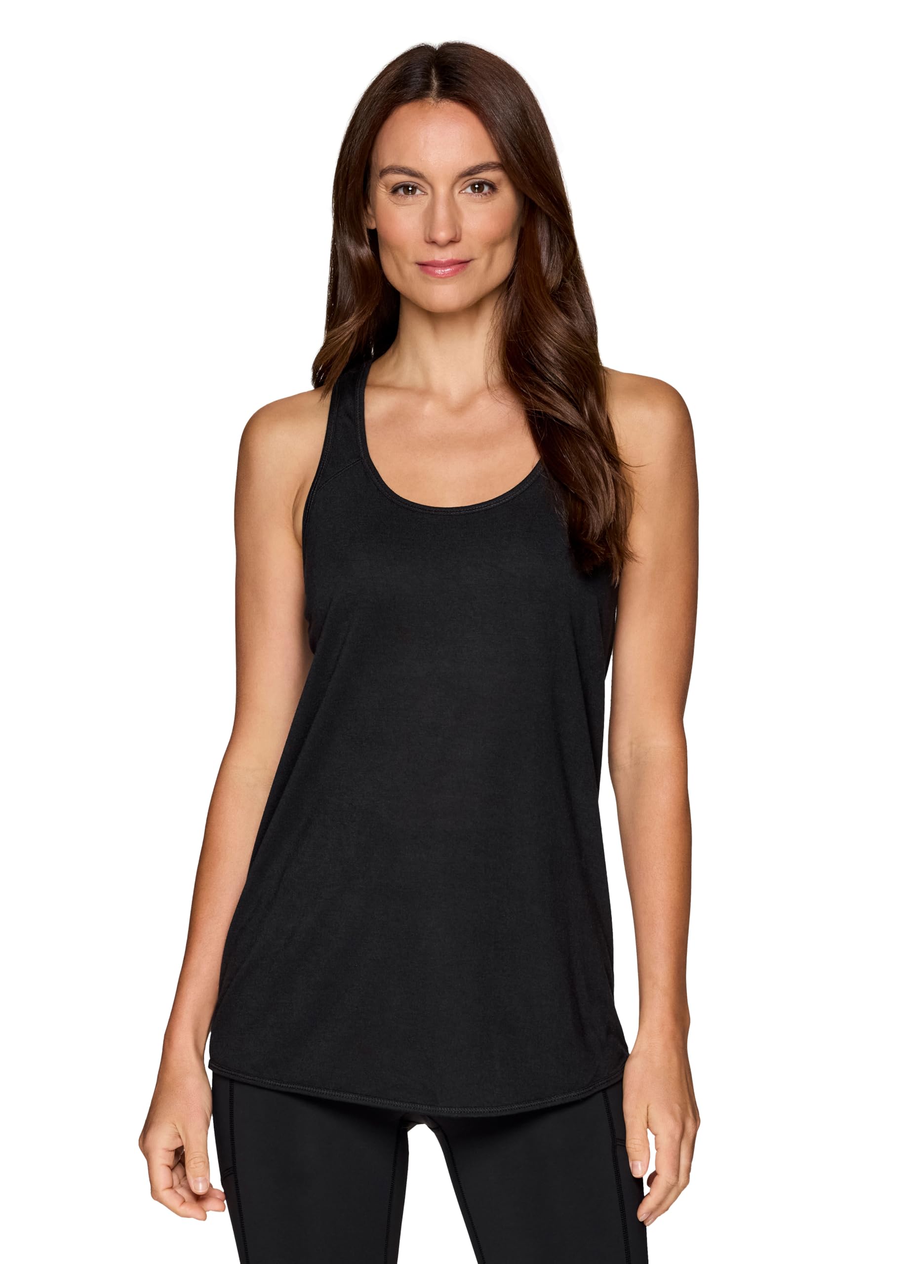 RBX Active Women's Flowy Yoga Workout Super Soft Twist Back Tank Top Tunic Black S21 S