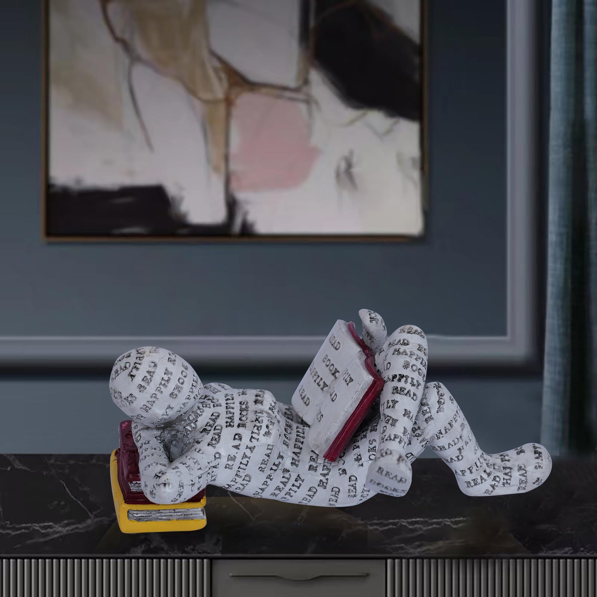- [ART DECORATION] These reading women figurines will be a special decoration for your office, living room, coffee table, bookshelf, and bedroom. Our lovely reading women statues are ideal to be placed on either a tabletop or shelf for a very elegant appearance. The shapes of these statues are a woman who is immersed in her reading of a book. The difference is that their bodies are covered with letters, which more effectively demonstrates the attractiveness and power of women.