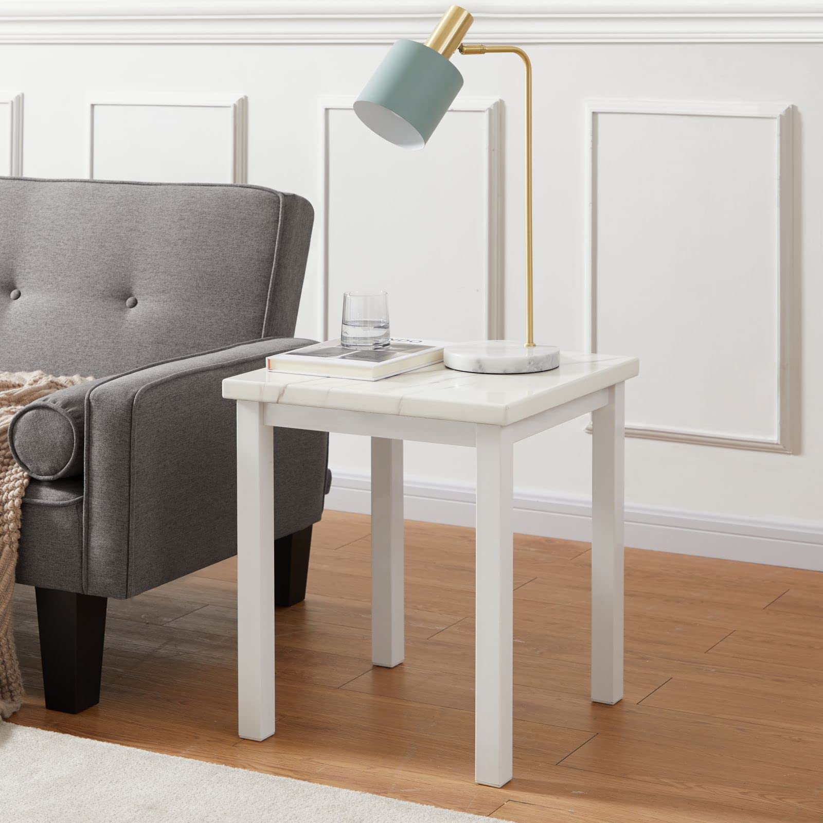 - 【Stylish Modern Furniture】This coffee table and end table sets features a pure white imitation marble finish with simple rectangular lines, cleverly blending Nordic minimalism with industrial style and enhance the style of the space