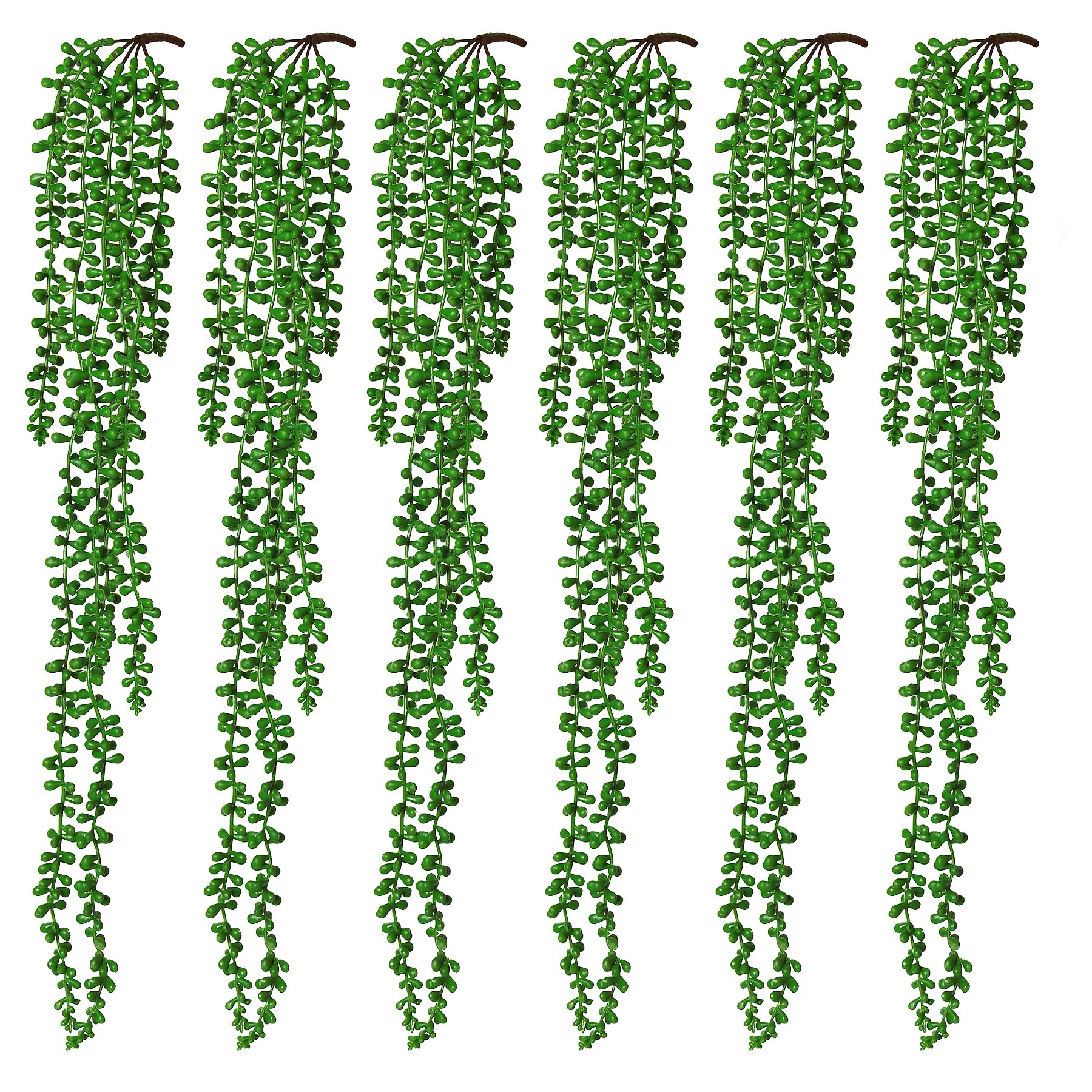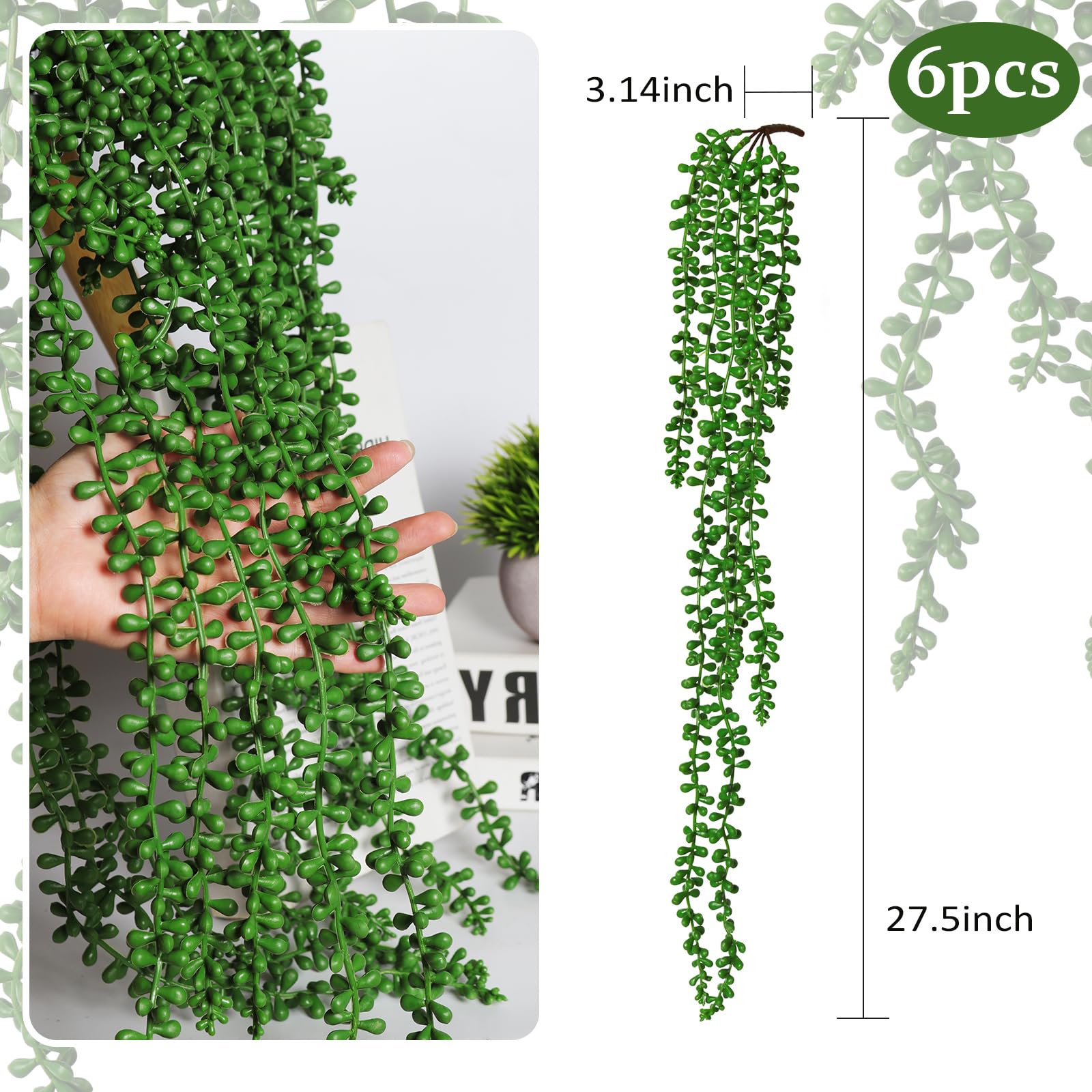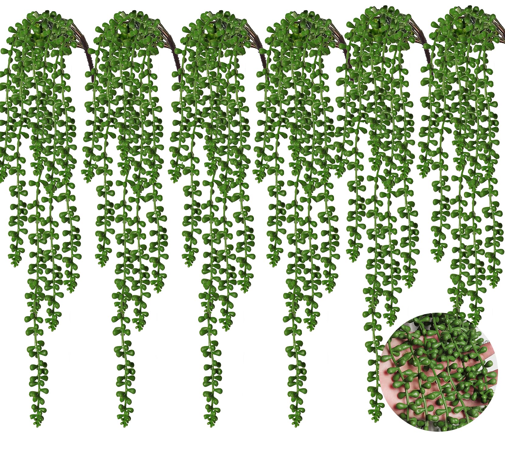 RECUTMS 6pcs Artificial Succulents Hanging Plants Fake Hanging Plants String of Pearls Faux Greenery Wall Plant Artificial Plants Indoor Outdoor Home Decor