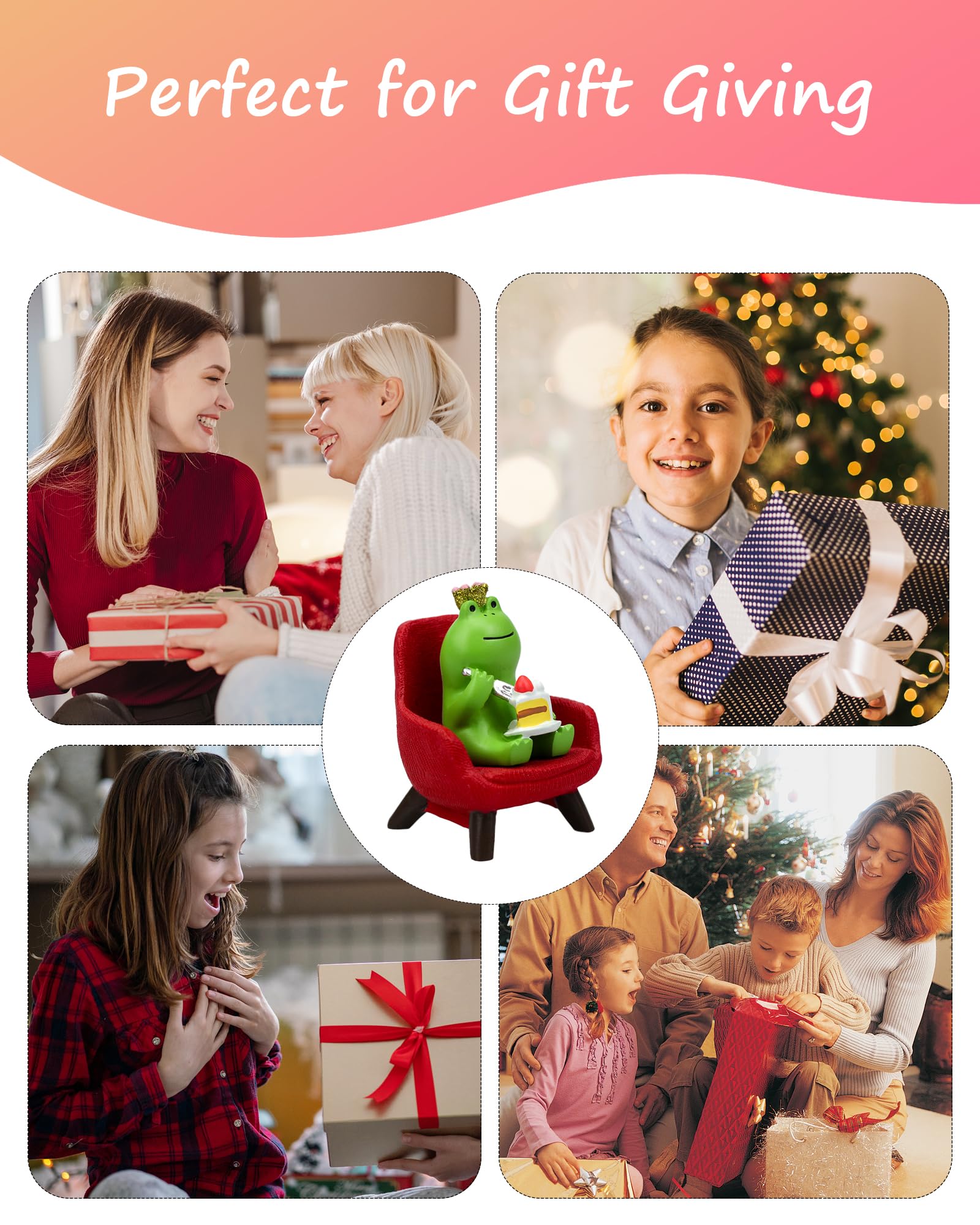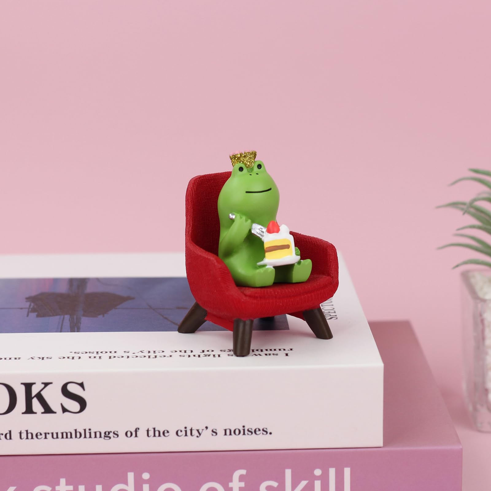 Refintural Miniature Frog Eating Cake Figurine - Funny Frog Sculpture for Shelf, Desk Decoration - Perfect Cute Frog Gift for Frog Lovers(Red Sofa)