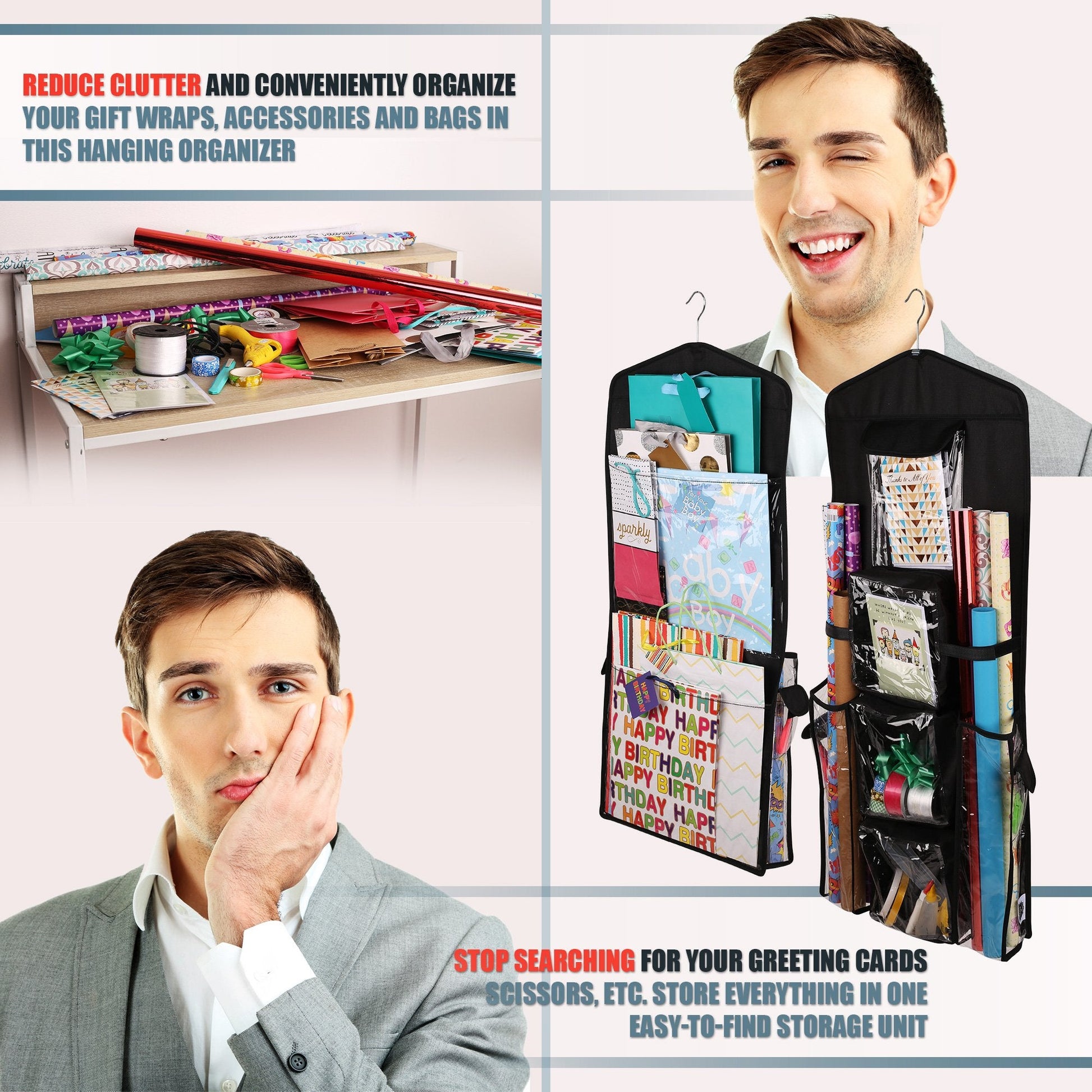 Details: If you are looking for a hanging organizer to store all your gift wrapping material and accessories in one place, look no further. This large (40''x 16'') and space-saving dual-sided gift wrap and bag organizer will help to de-clutter and organize your home or space in no time!