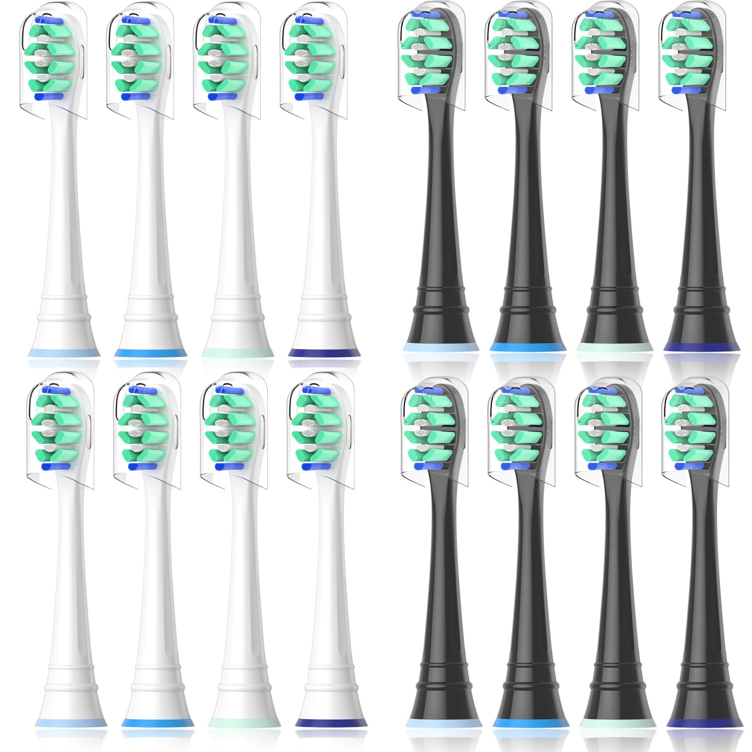 Replacement Heads Compatible with Sonicare Toothbrush, Replacement Brush Head for Philips Sonicare Electric Toothbrush 4100 5100 6100 9900 C2 W3 and More Snap-on Handles (8white+8black)
