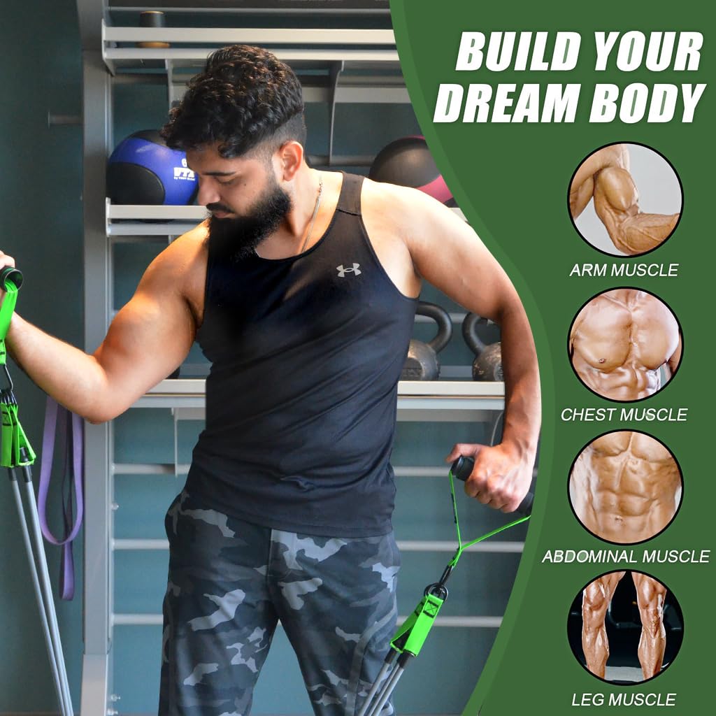 Details: Elevate your fitness routine with our Resistance Bands Set, offering a total resistance of up to 300lbs. This comprehensive set includes premium fitness bands with durable handles, a sturdy door anchor, comfortable ankle straps, and a convenient carrying bag, making it perfect for both home and on-the-go workouts. Crafted from high-quality materials, these bands are designed to withstand intense training sessions, providing consistent resistance for muscle building, toning, and rehabilitation exercises. Ideal for all fitness levels, this versatile set enables you to perform a wide range of exercises, enhancing strength, flexibility, and overall fitness. Get ready to transform your workouts and achieve your fitness goals with this all-in-one resistance bands set.