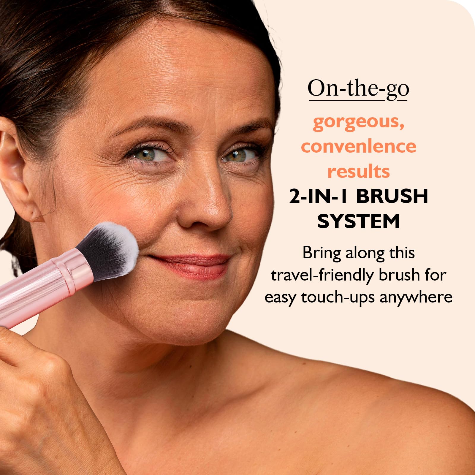 - PRECISE, SEAMLESS, AND PRETTY: New original Brush features an innovative dual-ended design for precise application and seamless blending, to realize more beautiful and natural makeup look. How to use the retractable bigger brush? Swirl or dip the brush into powder and gently tap off any excess. Apply to skin using sweeping, circular motions. For fuller coverage, apply using a patting motion
