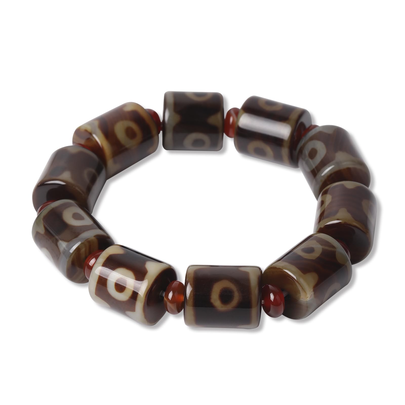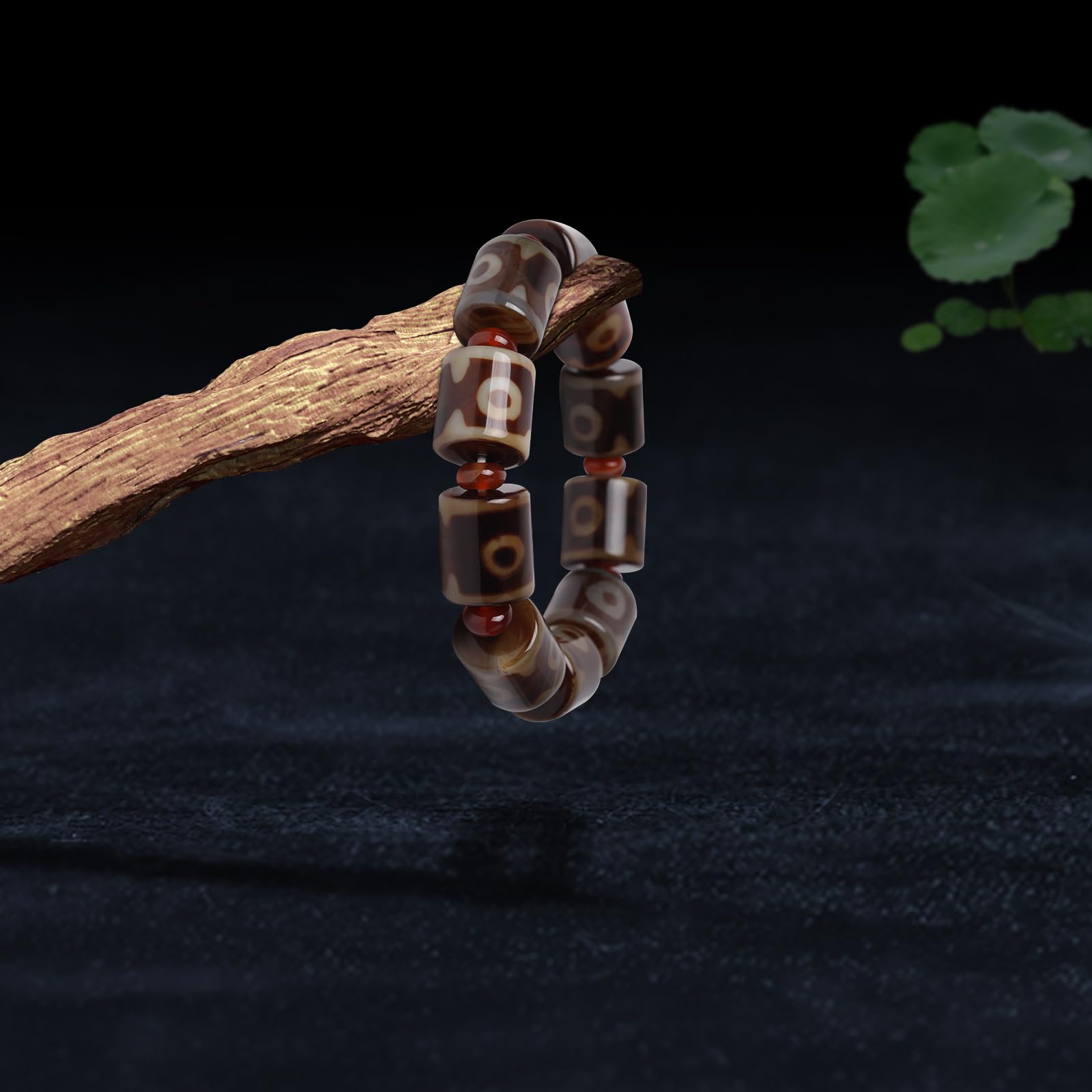 - [Elegant Fashion Design] Dzi Beads are hand-crafted from natural agate. The texture and color of each dZi are natural and unique. Dzi Beads are also called stones descending from the sky. They are shaped like eyes. Dzi beads are precious jewelry from Tibet which are believed to bring good fortune. The beads bracelet inner length is about 16cm / 6.3 inch (The rope has elasticity and can be stretched further).
