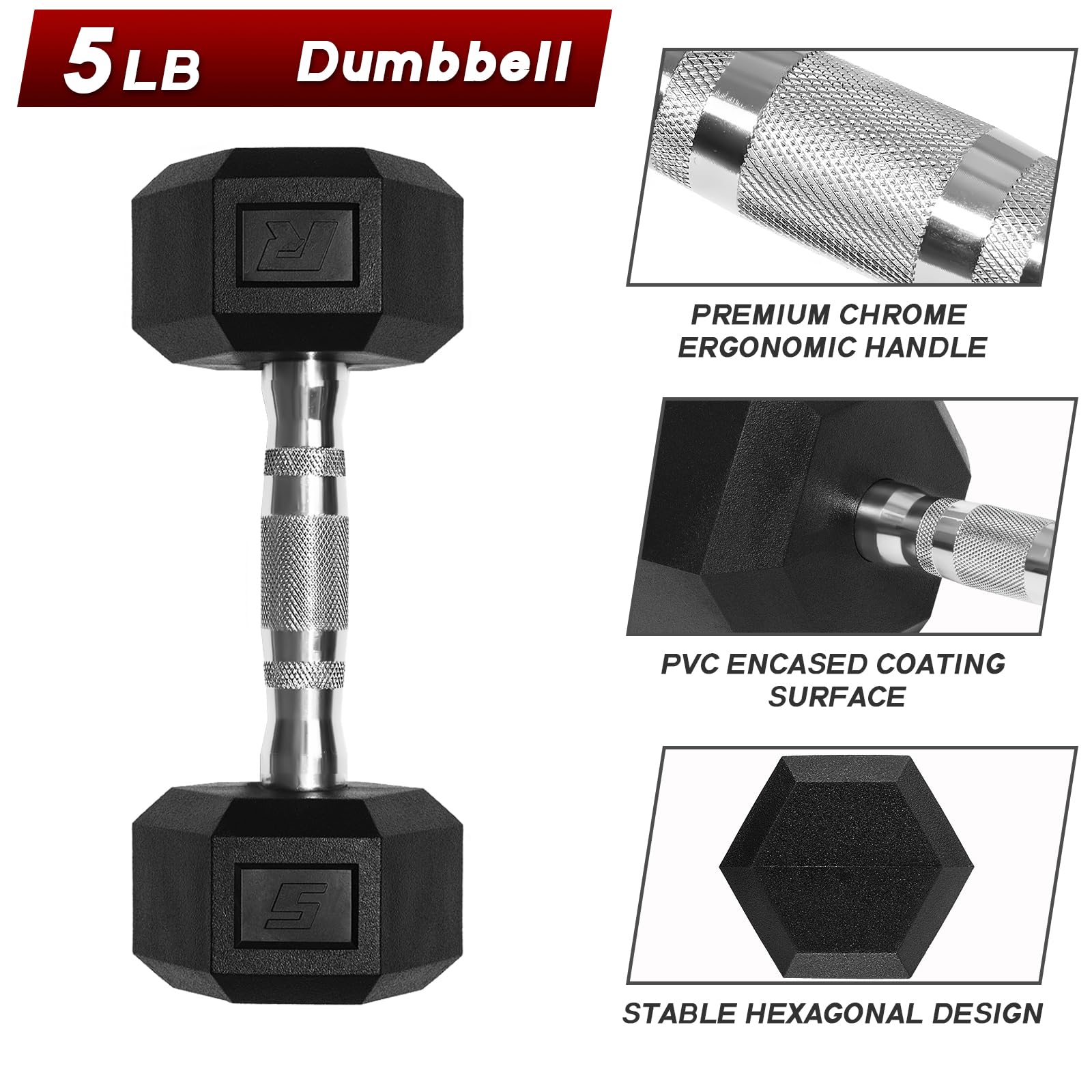 Ritfit 5-650 LBS PVC Encased Hex Dumbbell Sets with Optional Rack for Home Gym, Hand weight with Chrome Handle for Strength Training,Workouts,5LB