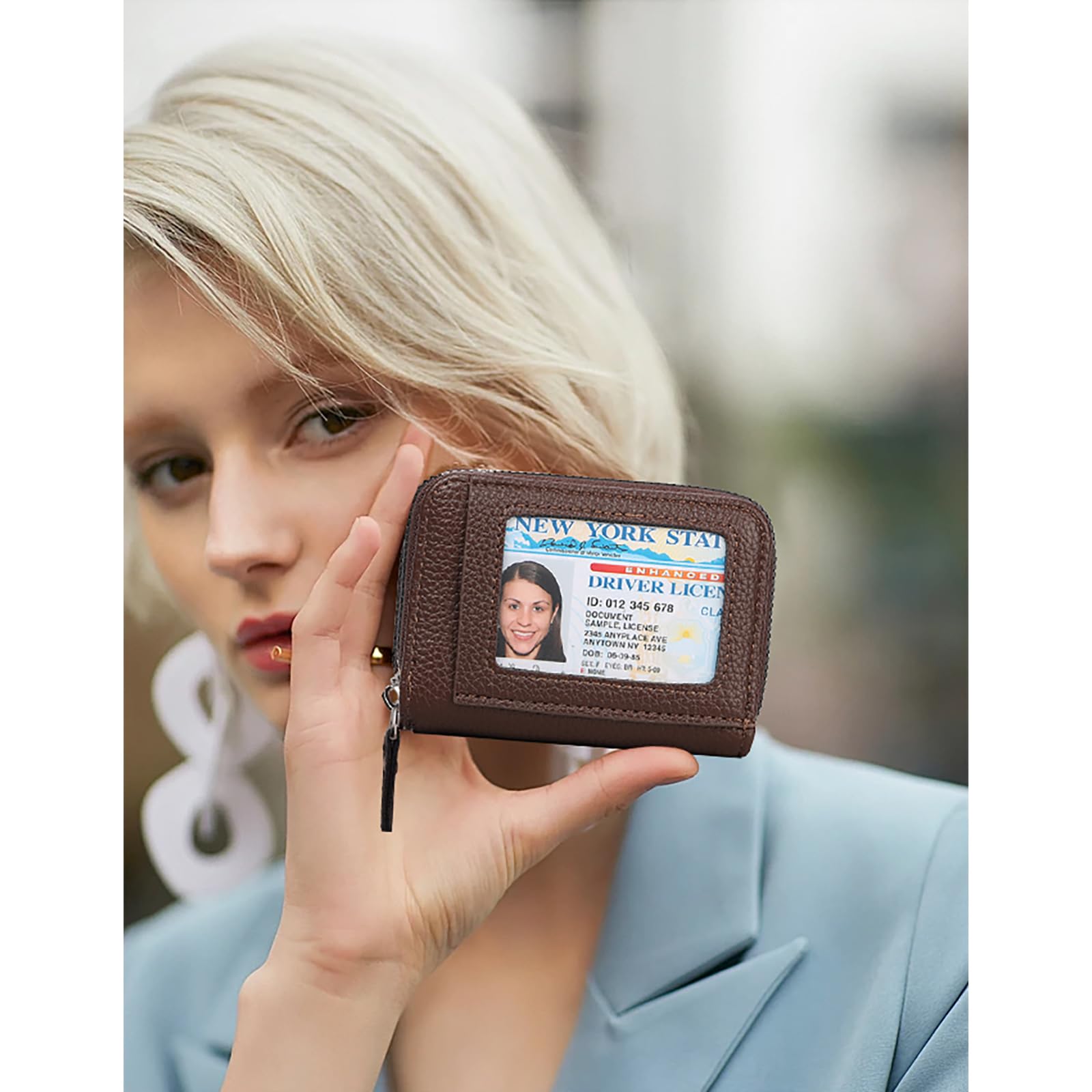 RNIEGA Credit Card Holder Wallet RFID Blocking Leather Small Wallet for Women Double Zipper Wallet with ID Window