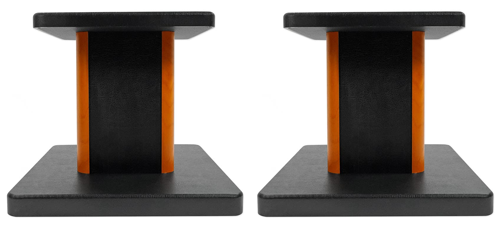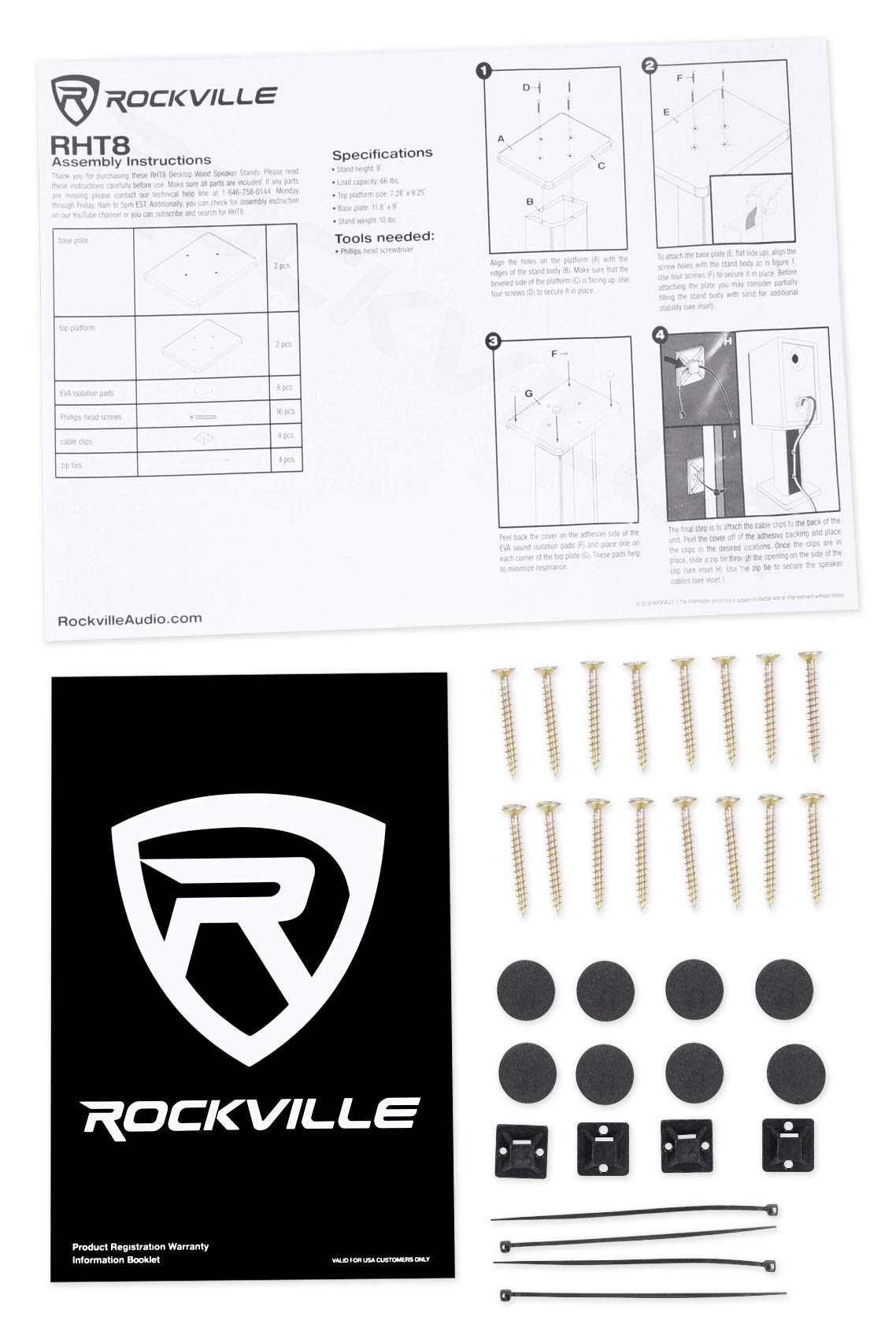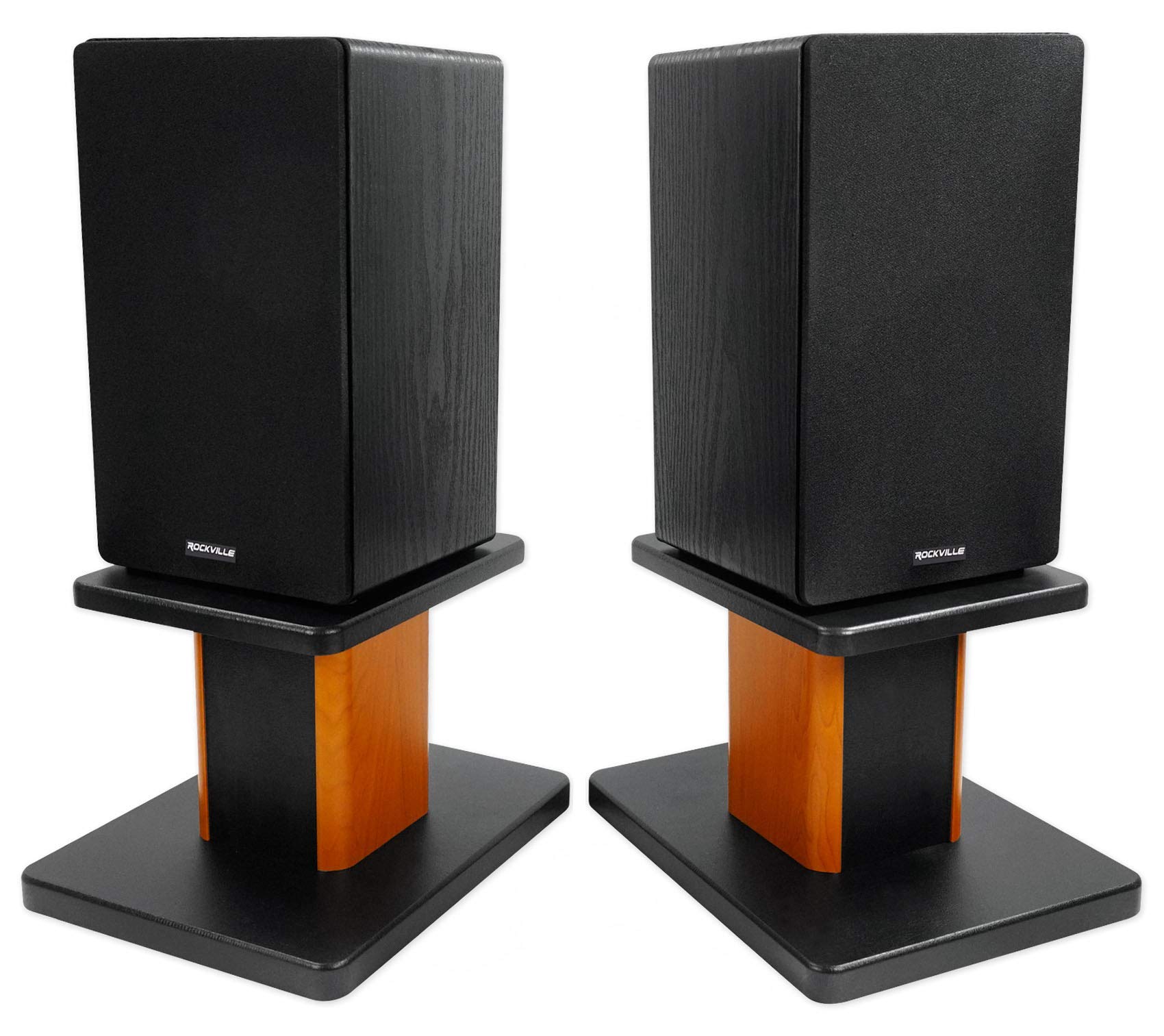 Details: Description: The Rockville RHT8C high performance Desktop wood speaker stands are designed with appearance, performance, and quality in mind. These stands are perfect for Computer speakers, Bookshelf speakers, and studio monitors! Our stands are finished with premium furniture-grade paint that will not crack, chip, or peel. These stands are constructed from high quality medium density fiber core to minimize resonance. Unlike our competitors who use particle board we use a higher quality wood in the construction of our stands. With the included EVA speaker isolation pads you can feel confident that your speakers will be sturdy and perform optimally. The load capacity of these stands are 66 lbs. Most other stands on the market have a maximum load capacity of 20 lbs. which really is not enough for a lot of speakers on the market. These stands are sturdy, built well, look great, and out-perform the competition so buy with confidence!