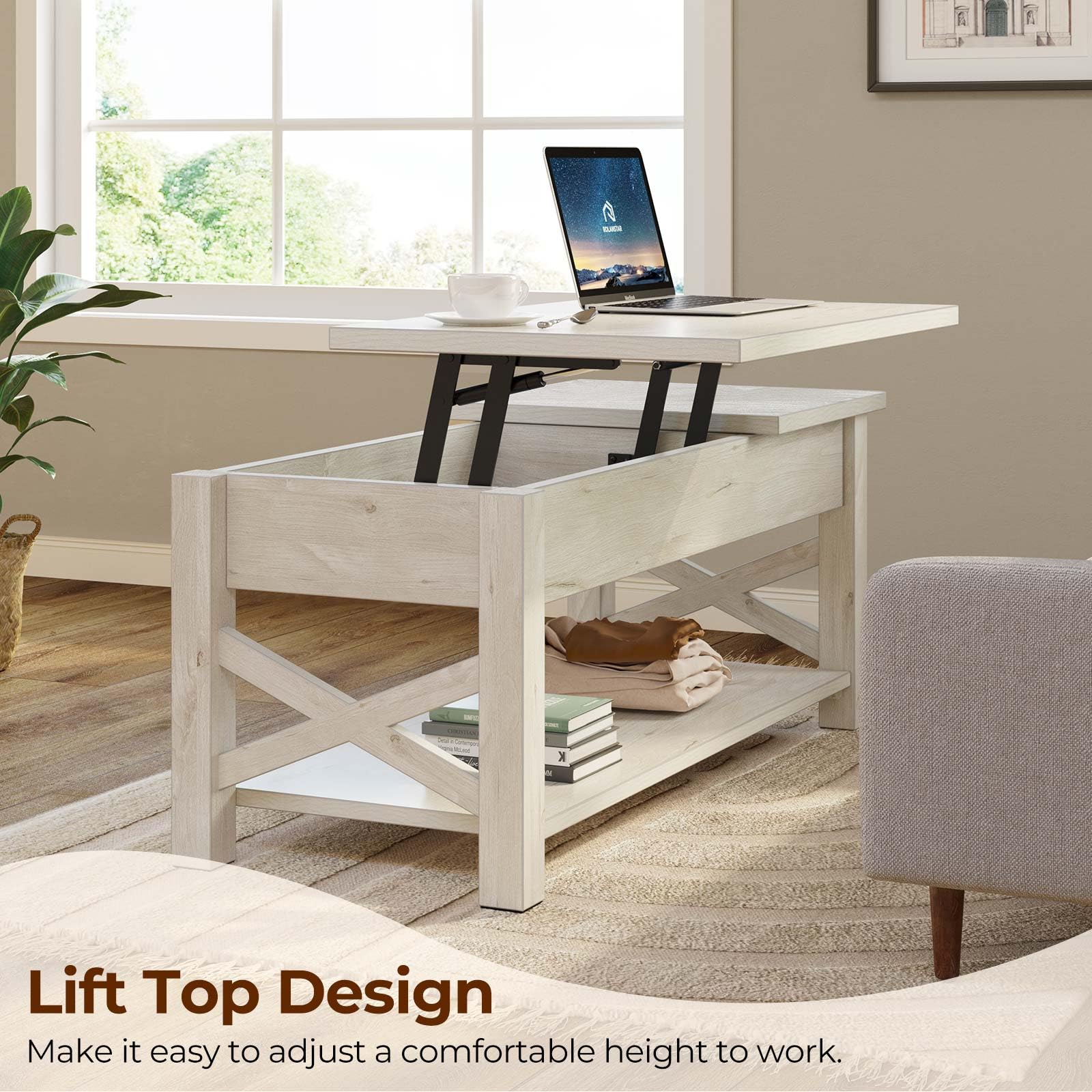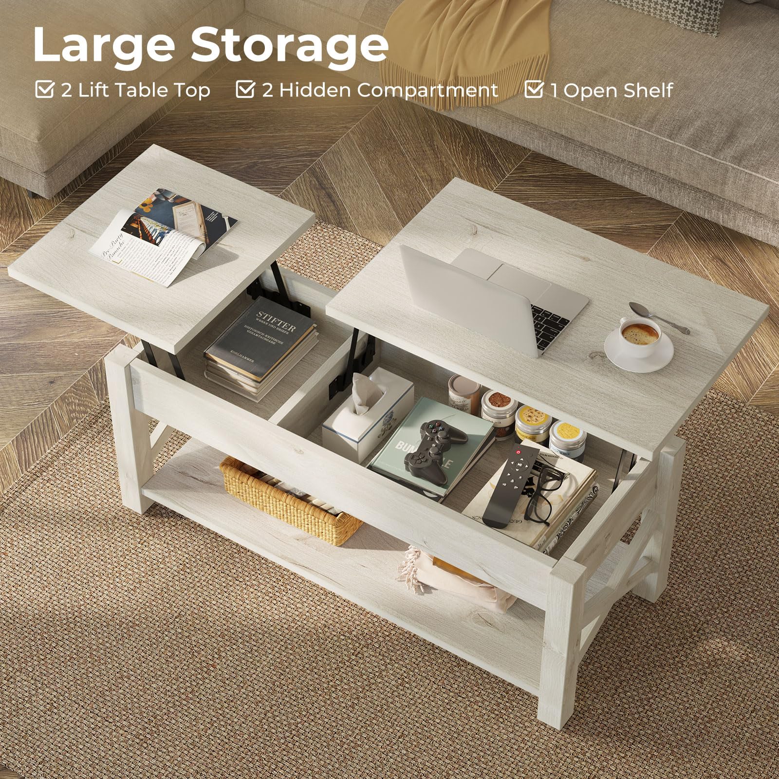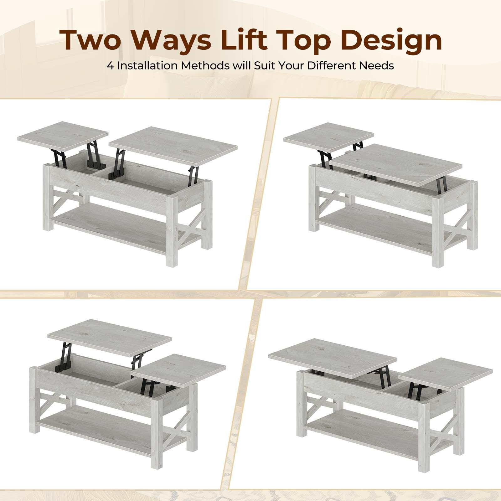 Rolanstar 47.2" Lift Top Coffee Table with Hidden Compartment, 2 Way Lift Top Coffee Table with Open Shelf & X Wooded Support, Farmhouse Center Table for Living Room, Grey