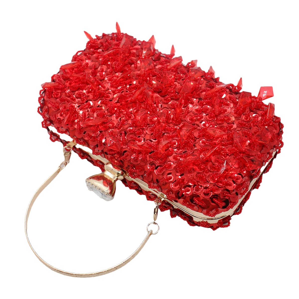 RomanticDesign Women Bling Evening Bag Fashion Embroidered Beaded Sequin Clutch Cocktail Wedding Party Purse, Red