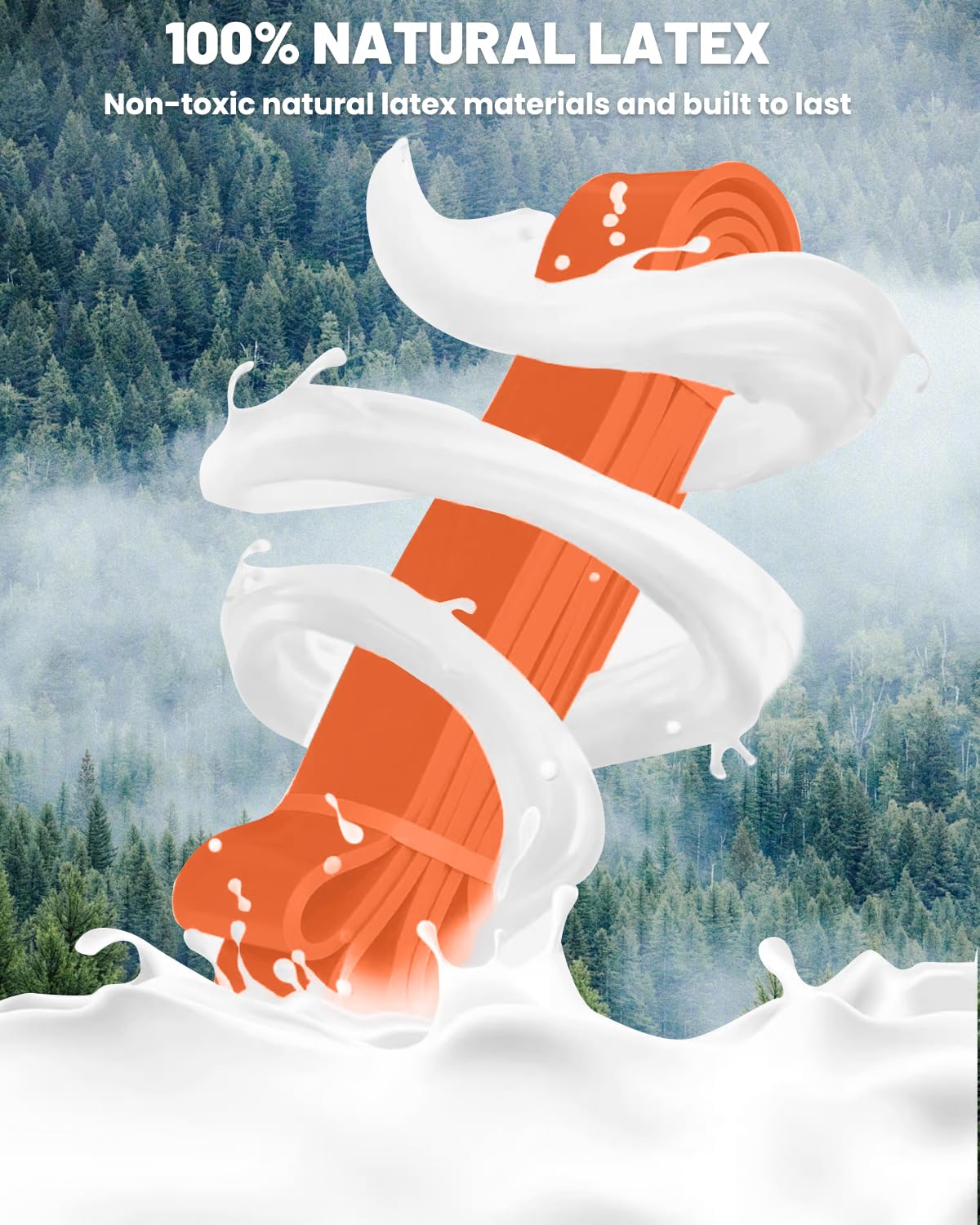 - Durable and Natural: Our pull-up band is made of 100% natural latex—non-toxic, odor-free, anti-slip, and resistant to curling. It’s safe, durable, and sustainable. Our exercise bands enhance comfort and wear-resistant performance without losing their elasticity over tim