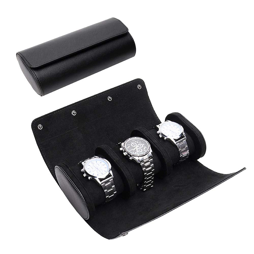 ROSELLE Watch Roll Travel Case for Men and Women- 3 Watch Storage and Organizer-Secure Storage with Innovative Removable Pillows & Solid Dividers for Home Storage, Travel and Display(Black Cross)