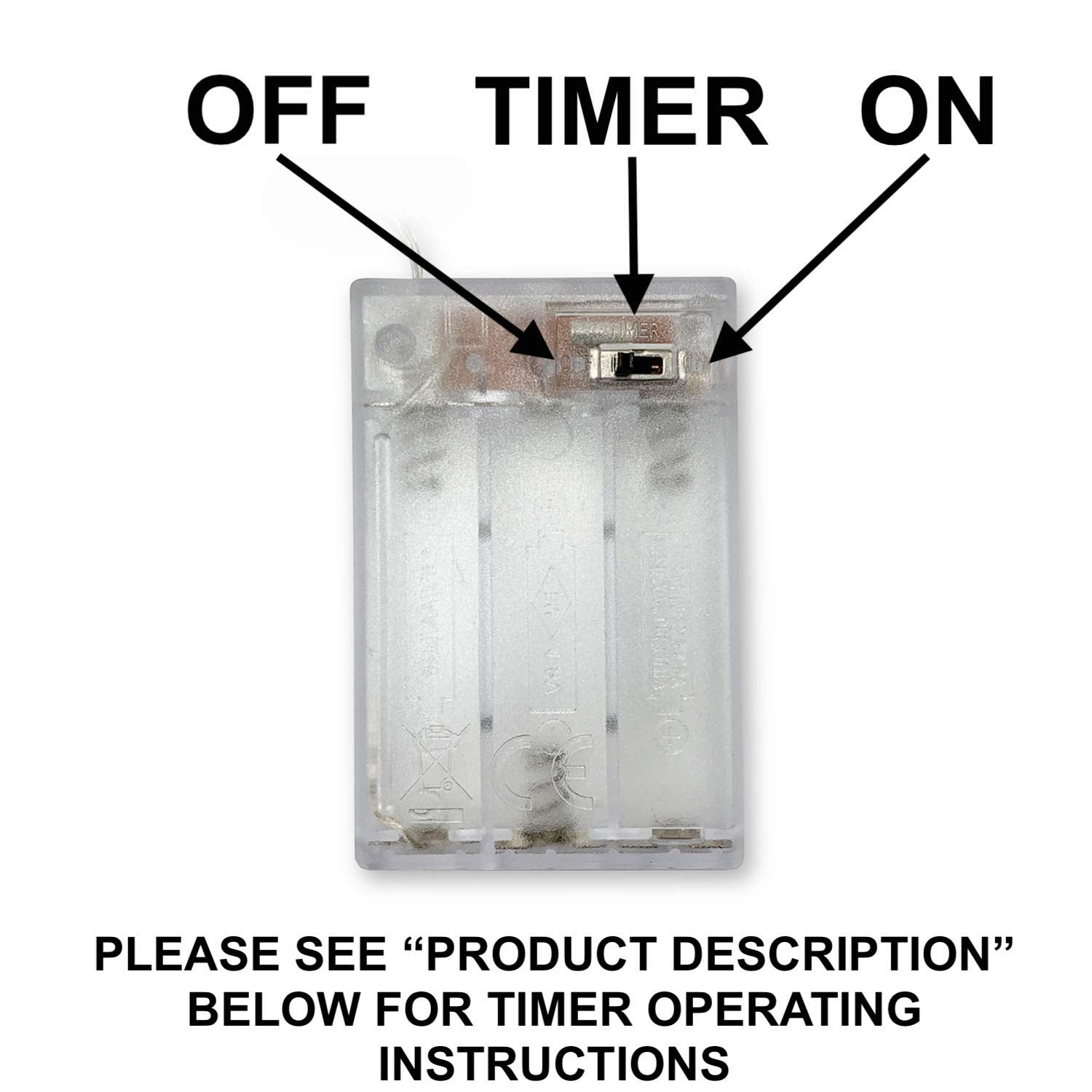 - Energy Efficient: Long life and low energy consumption LED bulbs. Small and clear batteries box is easy to hide requires 3 AA batteries (Not Included). Over 48 hours non stop operating time and over 14 days on Timer” Mode But much longer operating time when used with breaks.