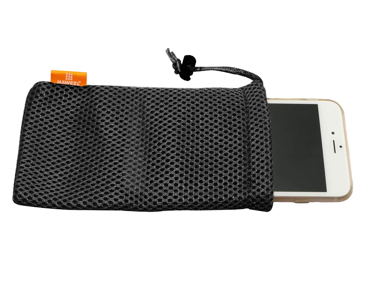 RuiLing 5pcs Multifunction Nylon Mesh Drawstring Pouch Bag for Mobile Phone,Sunglasses,Electronic Gadgets-Travel Organizer Outdoor Activities Storage Pouch 3.5"x 7.3"(Black)