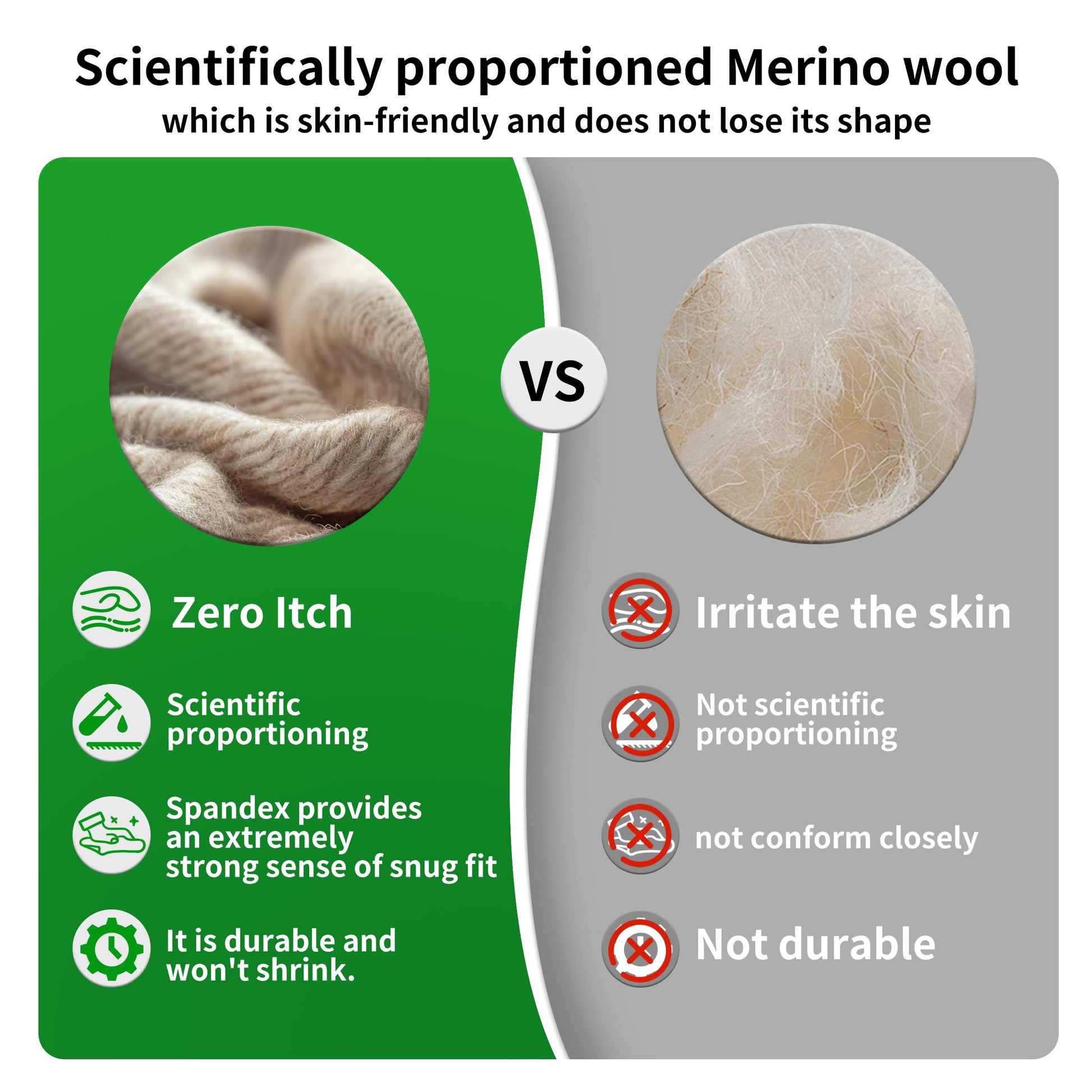 90% ultra-soft, non-itchy merino wool repels moisture naturally, keeping feet dry in summer and warm in winter.