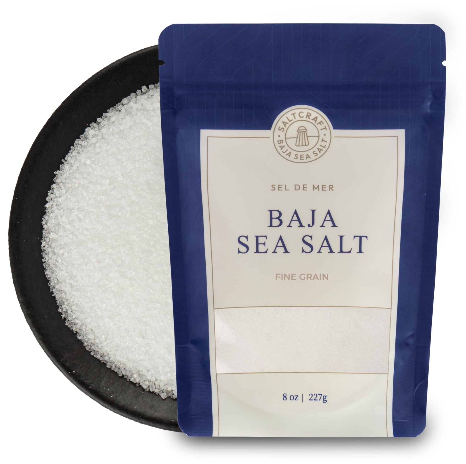 SALTCRAFT COMPANY - Baja Sea Salt, Fine Grain Crystals, Low Sodium 30%, Kosher Certified & Mineral Salt - 8 Ounce