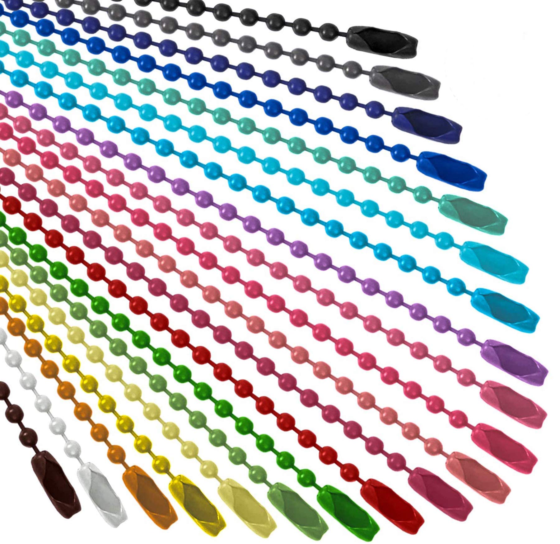 SANNIX 100Pcs Ball Beads Chain, Bulk Dog Tag Metal Chain, 4.72 Inch Ball Chain Keychains with Connectors for Hanging Christmas Decoration (Mixed Color)
