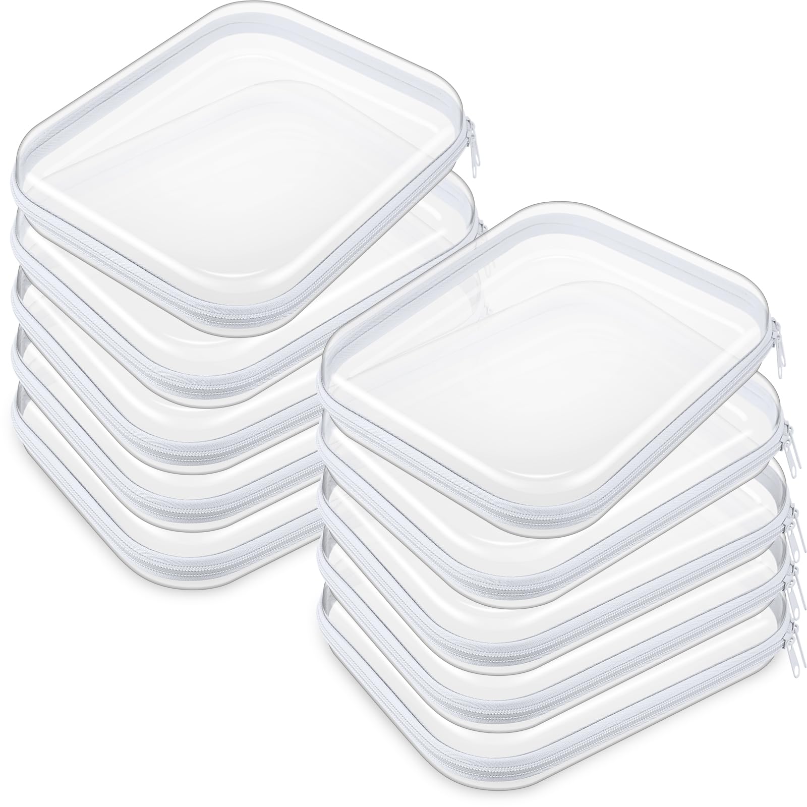 Sanwuta 10 Pcs Hard Zipper Case Clear Hard Pouches Plastic Zipper Pencil Box Toy Storage Bins Portable Plastic Containers for Travel Toiletry Office Cosmetic Blocks Puzzles Organizer(Clear,M)
