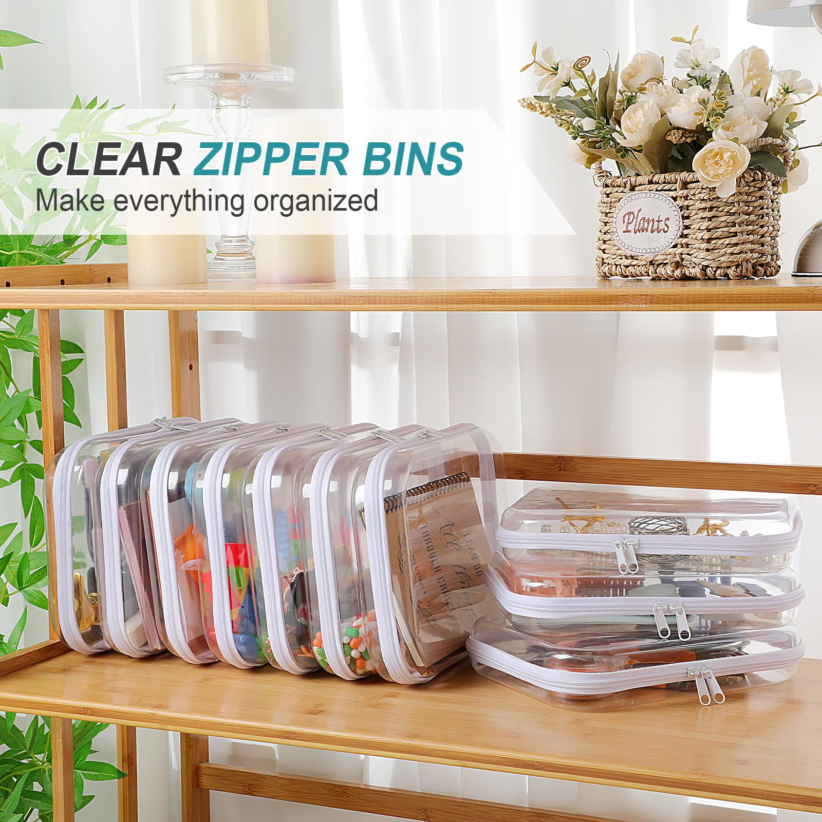 - Versatile Functionality: these stackable clear zipper boxes are suitable for organizing small items and making them easy to find; They are ideal for storing building blocks, puzzles, game accessories, stationery, toothbrushes, toothpaste, shampoo, conditioner, soap, cosmetics, crafts, beads, coins, earplugs, pins, jewelry, watch parts, and more; Suitable for use in classrooms, offices, bedrooms, bathrooms, laundry rooms, kitchens, craft rooms, and garages