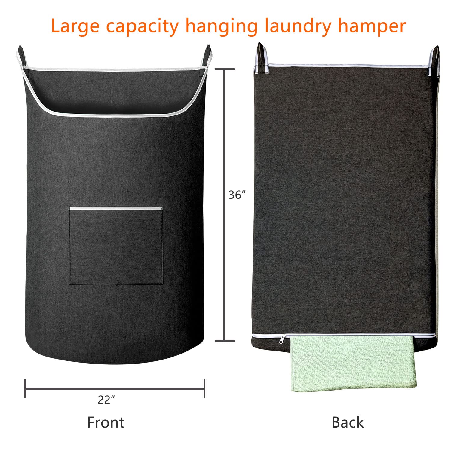 - đăEXTRA LARGE CAPACITY ăUpgrage the size of the door hanging laundry hamper bag to 36x22 inch, large capacity will be more convenient for you to hold more thick clothes, especially for sweaters, coats and bedclothes and bed sheets.the front pocket is designed for small things, such as socks, towel, underwear,etc.