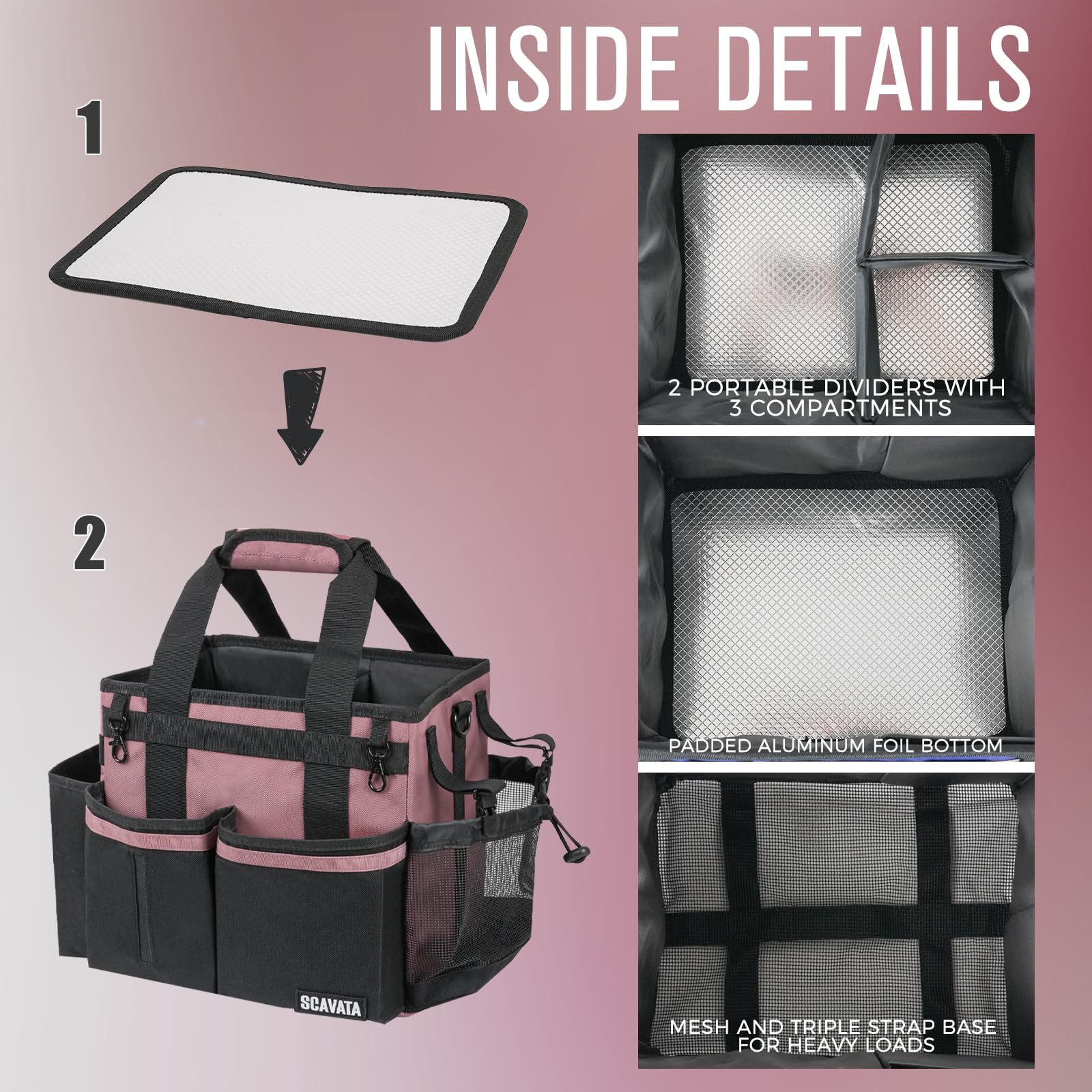 SCAVATA Compact Wearable Cleaning Caddy, Small Cleaning Caddy Supplies Organizer with Handle & Shoulder Straps for Housekeepers, Under Sink & Car Cleaning Tool Organizers Bag (LotusPink)