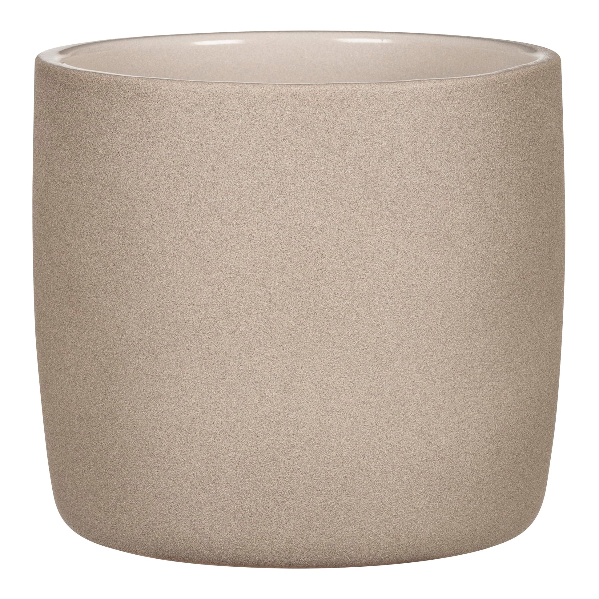 SCHEURICH Set of 2 Solido Taupe Stone Ceramic Pots – 5.9" Barrel-Shaped Indoor Planters – Durable&UV-Resistant - for Houseplants, Herbs & Greenery – Modern Decorative Design – Made in Germany – 0.5 gl