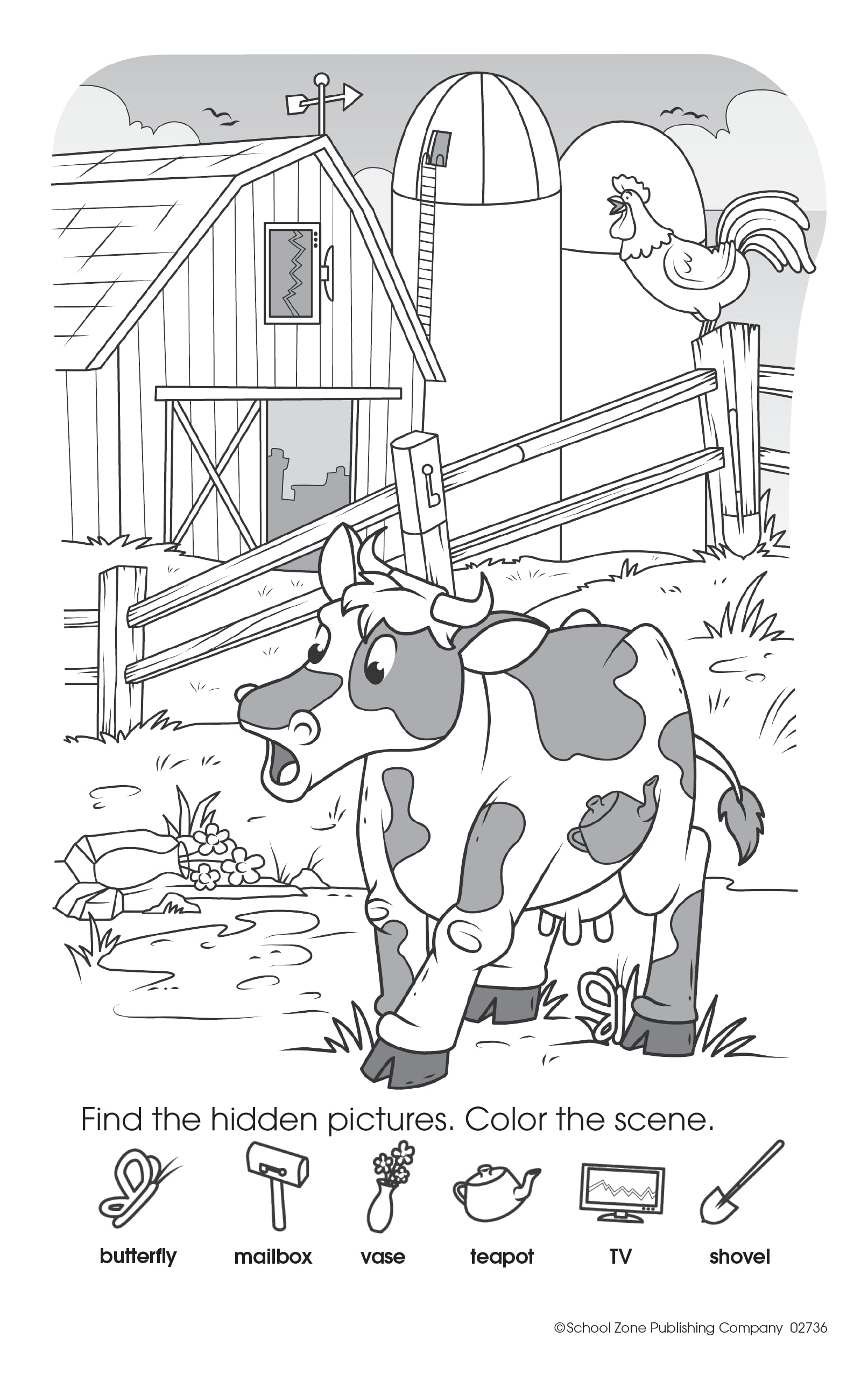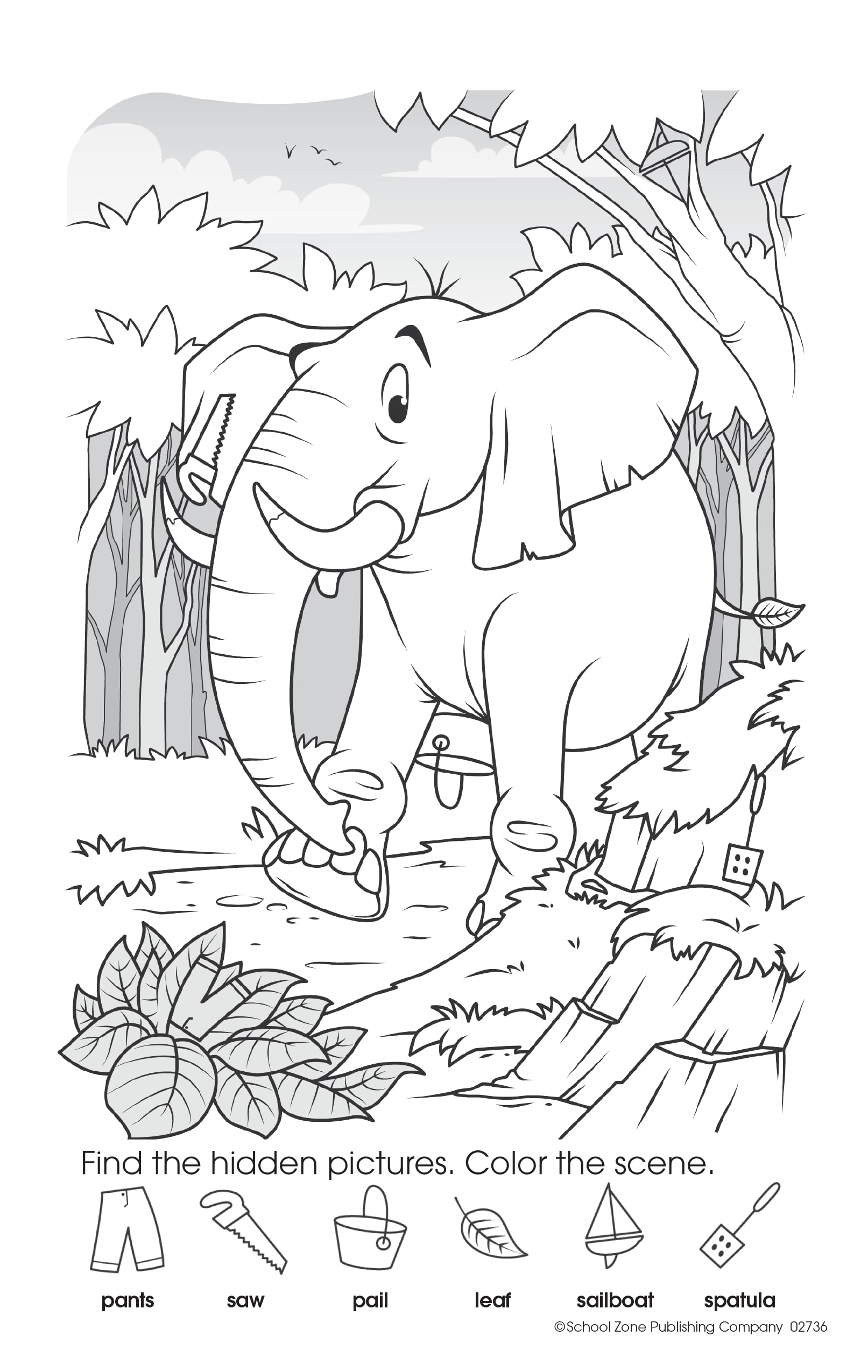 BOOK FEATURES 48 hidden picture pages For ages 4-6 5.313' x 8.5' pages with sturdy backing that creates a writing surface Top bound pad with easy-tear pages for individual worksheets Each page features a challenging, confidence-boosting hidden picture puzzle Kids can first locate the hidden objects, then color the entire picture Detailed illustrations spark the imagination and help with focus Portable and perfect for on-the-go learning!
