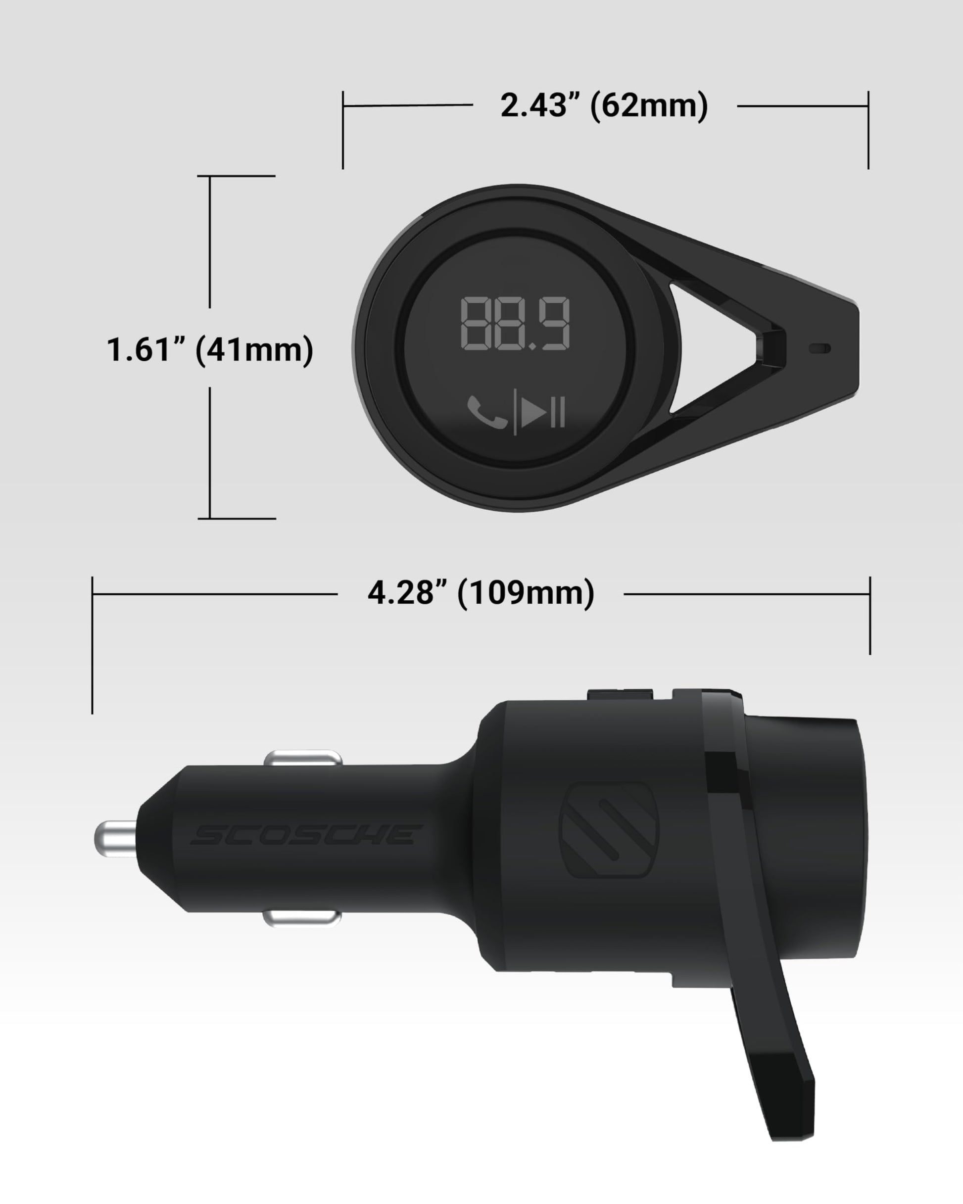 Scosche BTFM9 FM Bluetooth Transmitter Car, Dual 12W USB-C and USB-A Charging Ports, Fast Type C Car Charger, Wireless Radio Bluetooth Adapter, Hands-Free Kit for Calls, Siri and Google Assistant