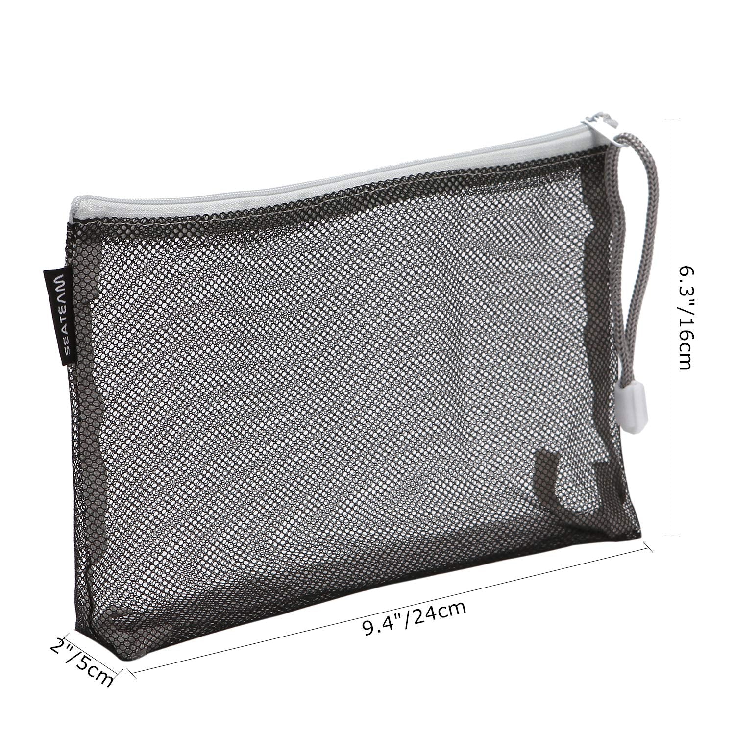 Sea Team 6pcs Multicolored Portable Travel Toiletry Pouch Nylon Mesh Cosmetic Makeup Organizer Bag with Zipper, Colorful