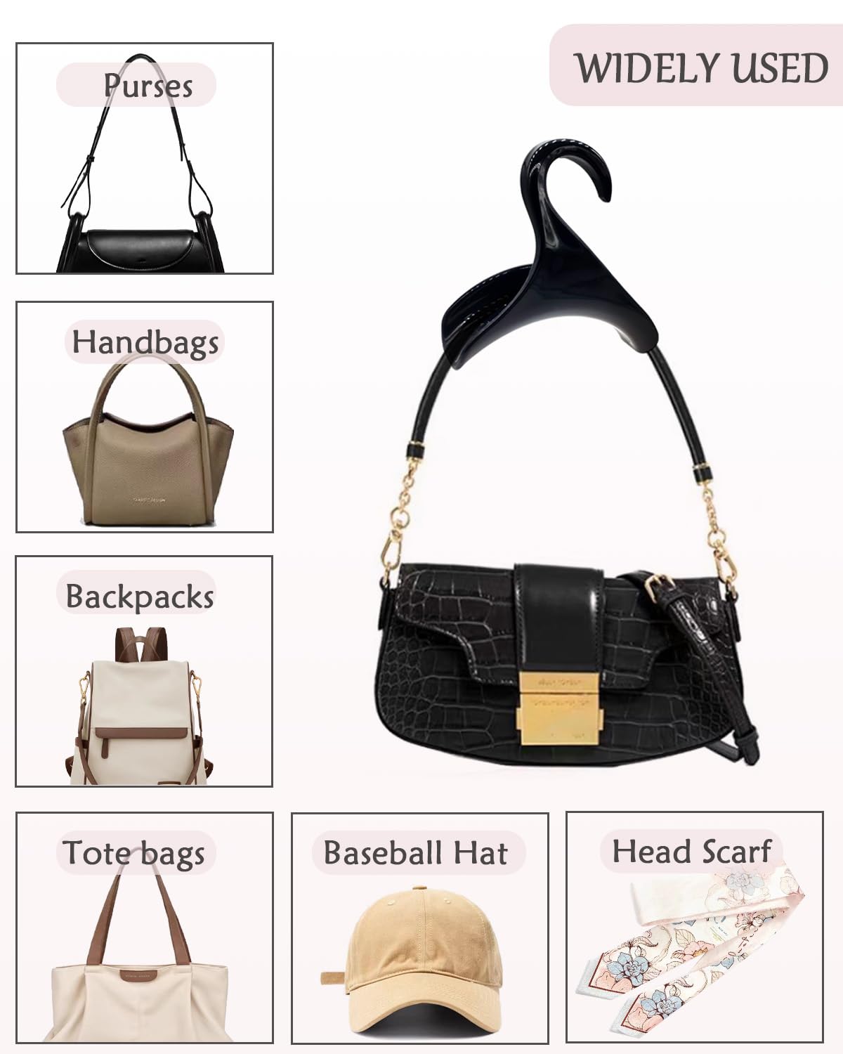 - WIDE APPLICATION: You can use the bag hanger to hang purses, handbags, backpacks, tote bags, and other small items in closets checkrooms and other places.