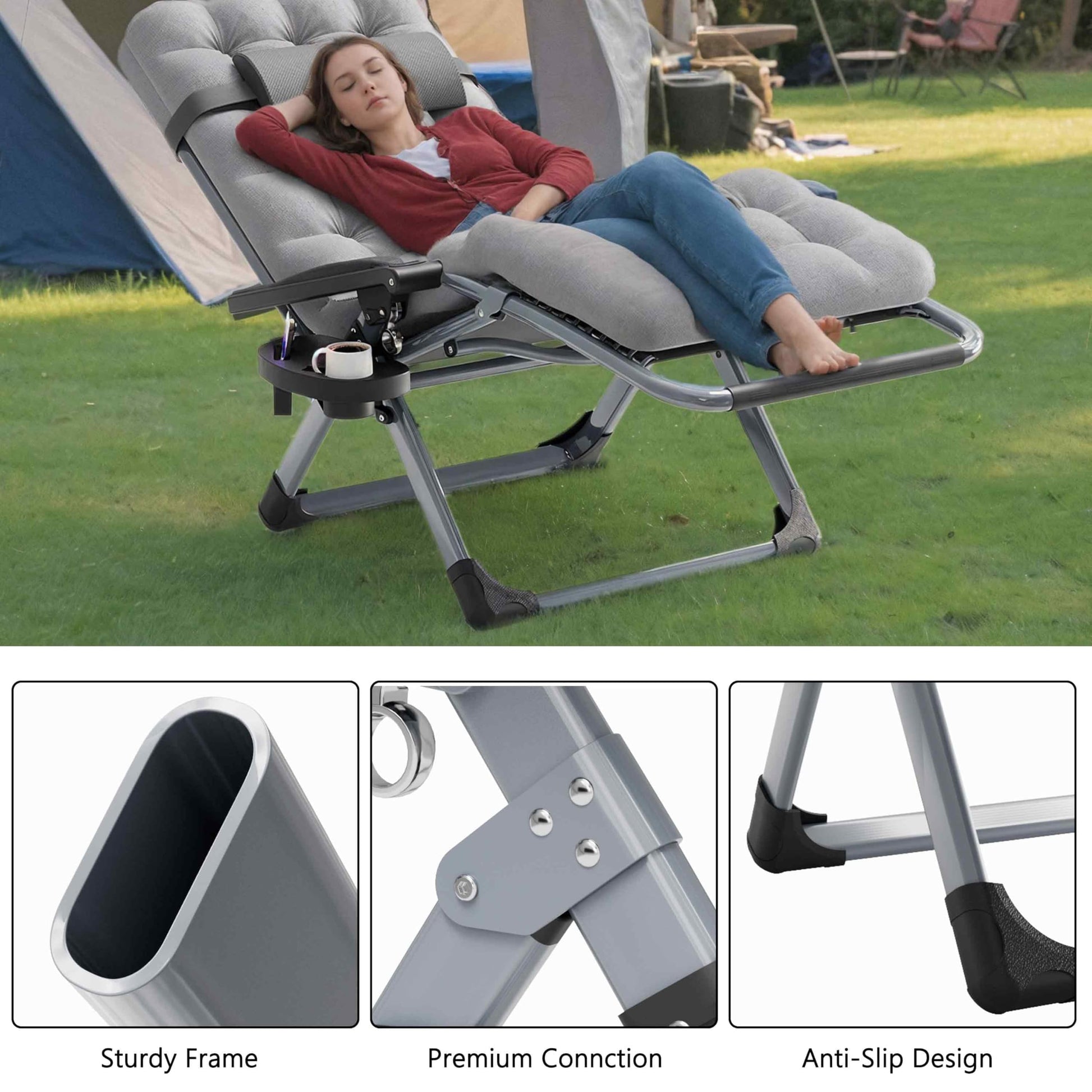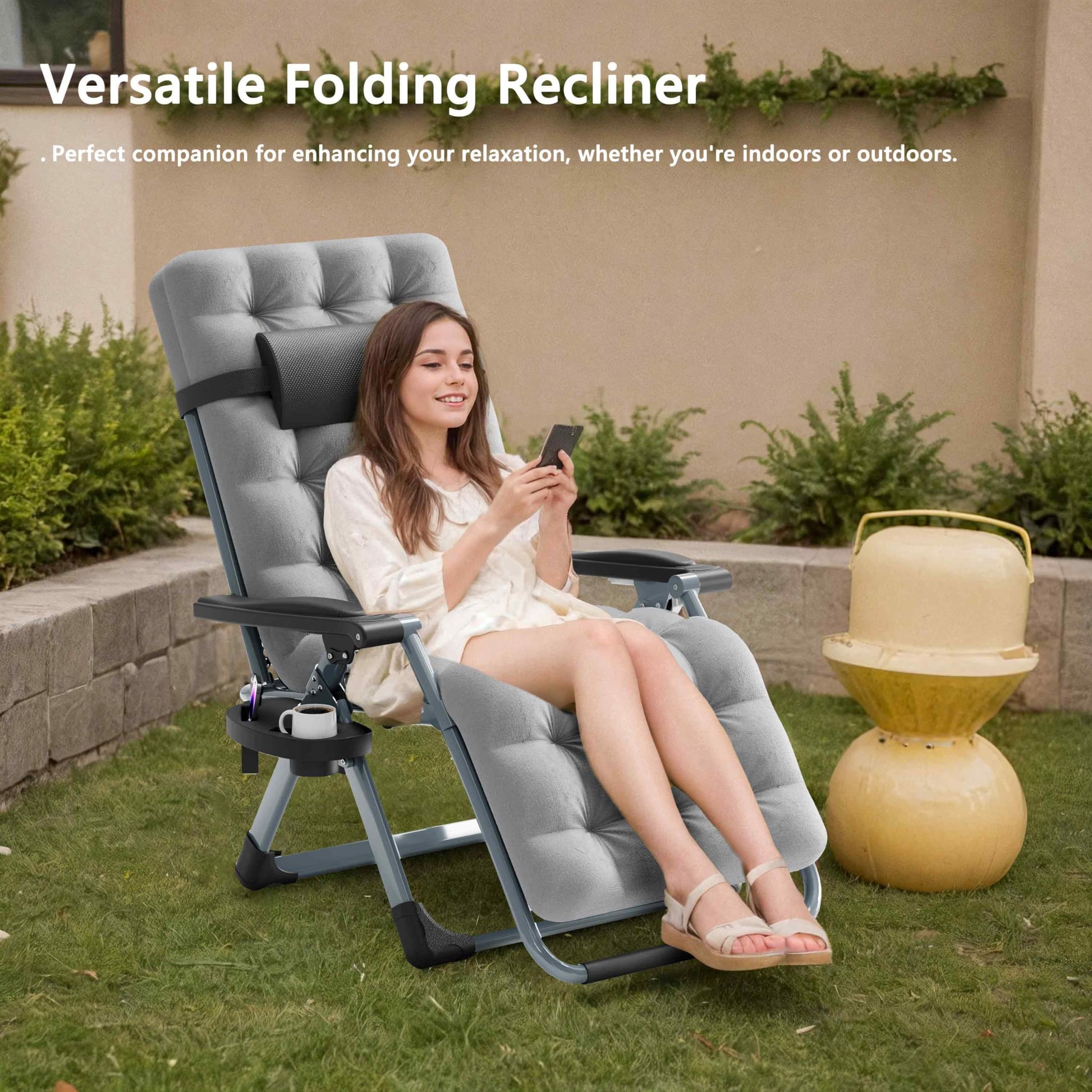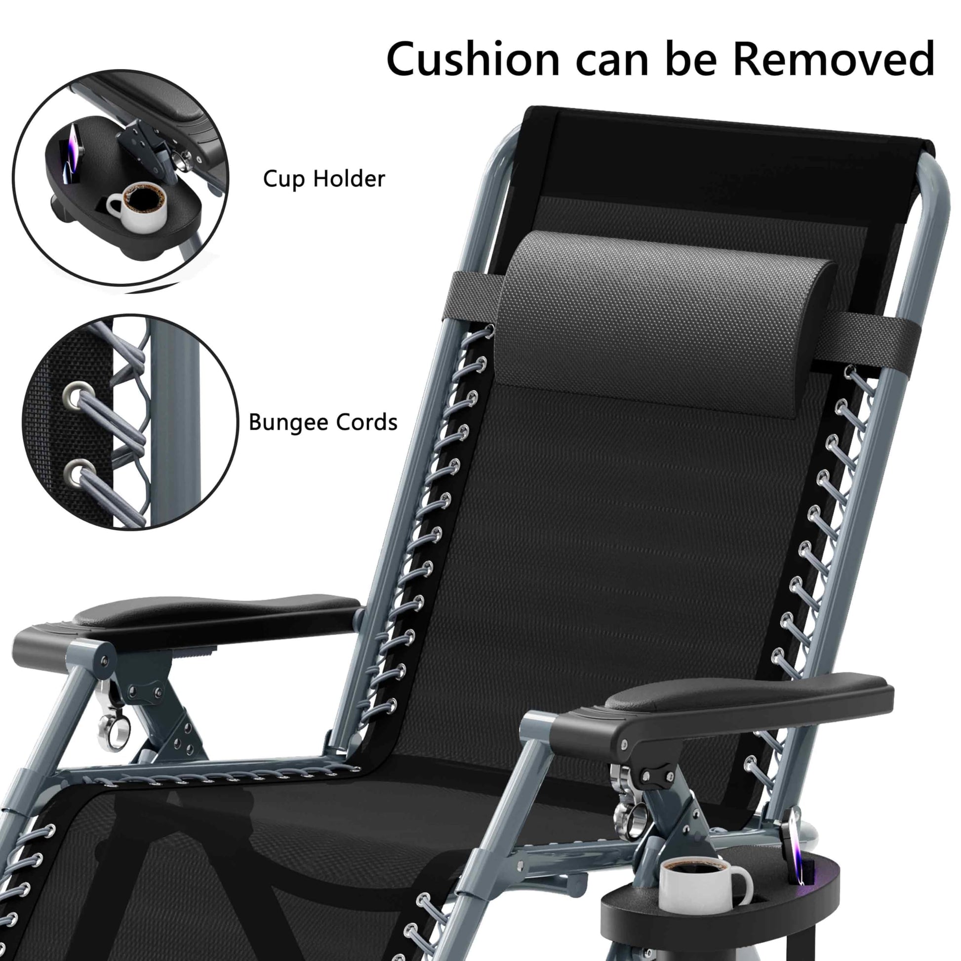 - Extra Thick Cushion: The zero gravity lounge chair is equipped with a 4' cushion for enhanced softness and comfort. Additionally, the padded pillow adds an extra layer of comfort.The detachable cushion ensures good ventilation, making it suitable for use in all seasons.