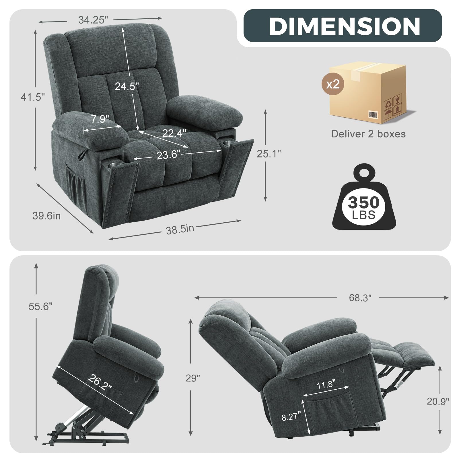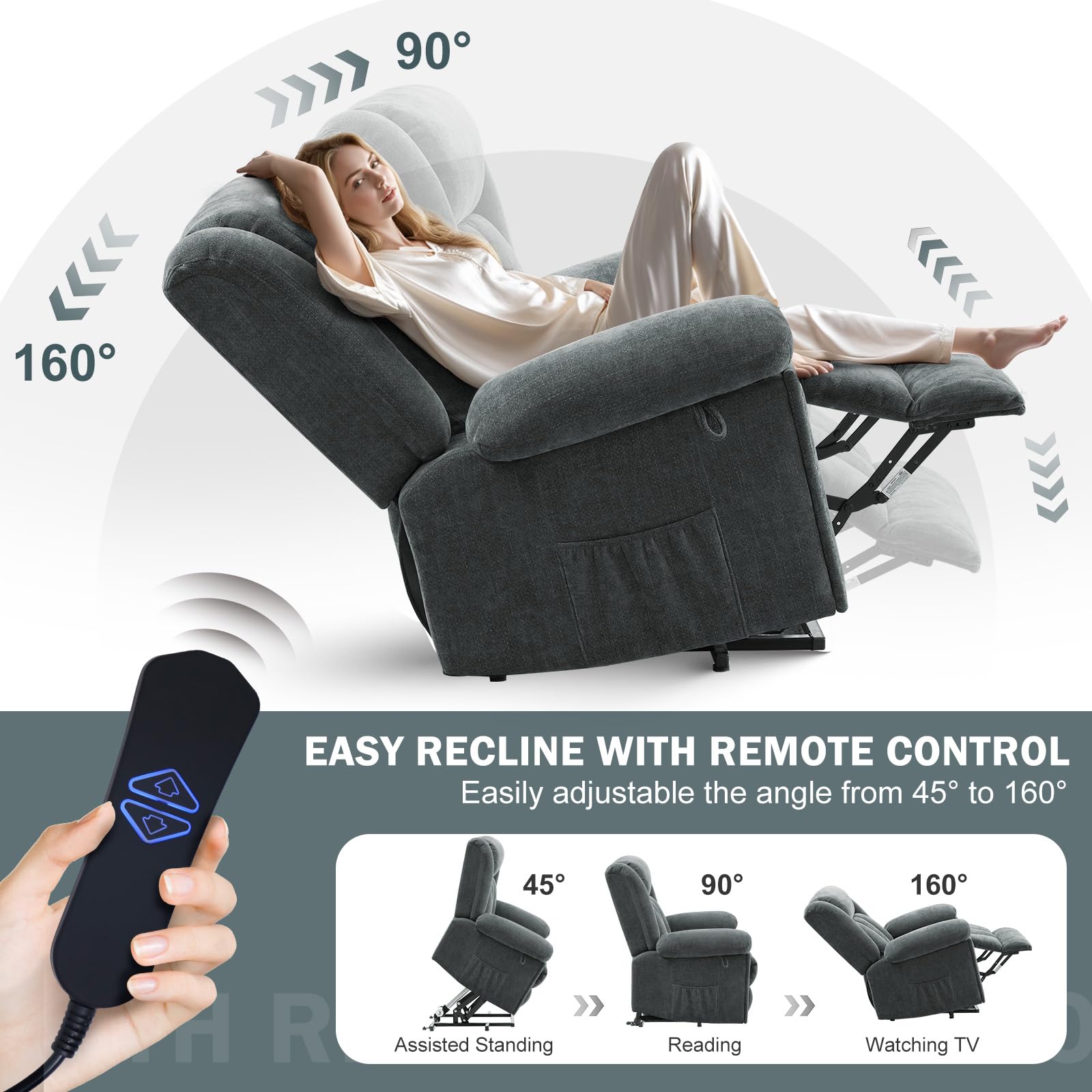 - 【Quality Fabric & Overstuffed Pad】Our lift chairs recliners for elderly are made of high-quality chenille which is soft and wear resistance. The backrest, seat cushion and armrests are filled with high-density sponge, which provides you ultimate comfort and support, just like the whole body is wrapped up in chair. The chenille is soft to the touch, durable, which is functional for optimal comfort, perfect for reading, sleeping or napping