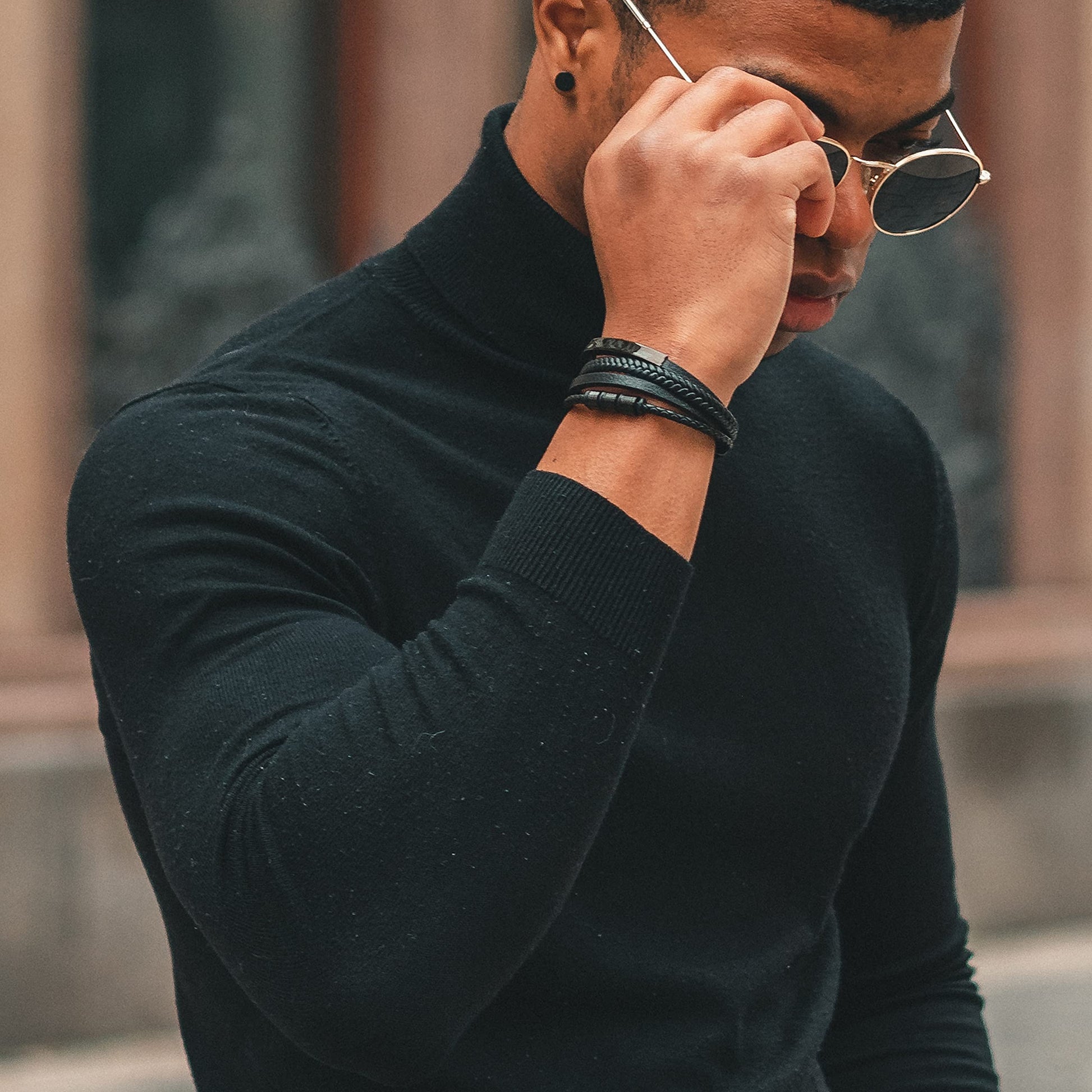 - STYLE - The black leather bracelet is the ideal accessory to complete any outfit. Its eye-catching, elegant design with the braided leather makes it suitable for any occasion and definitely attracts attention