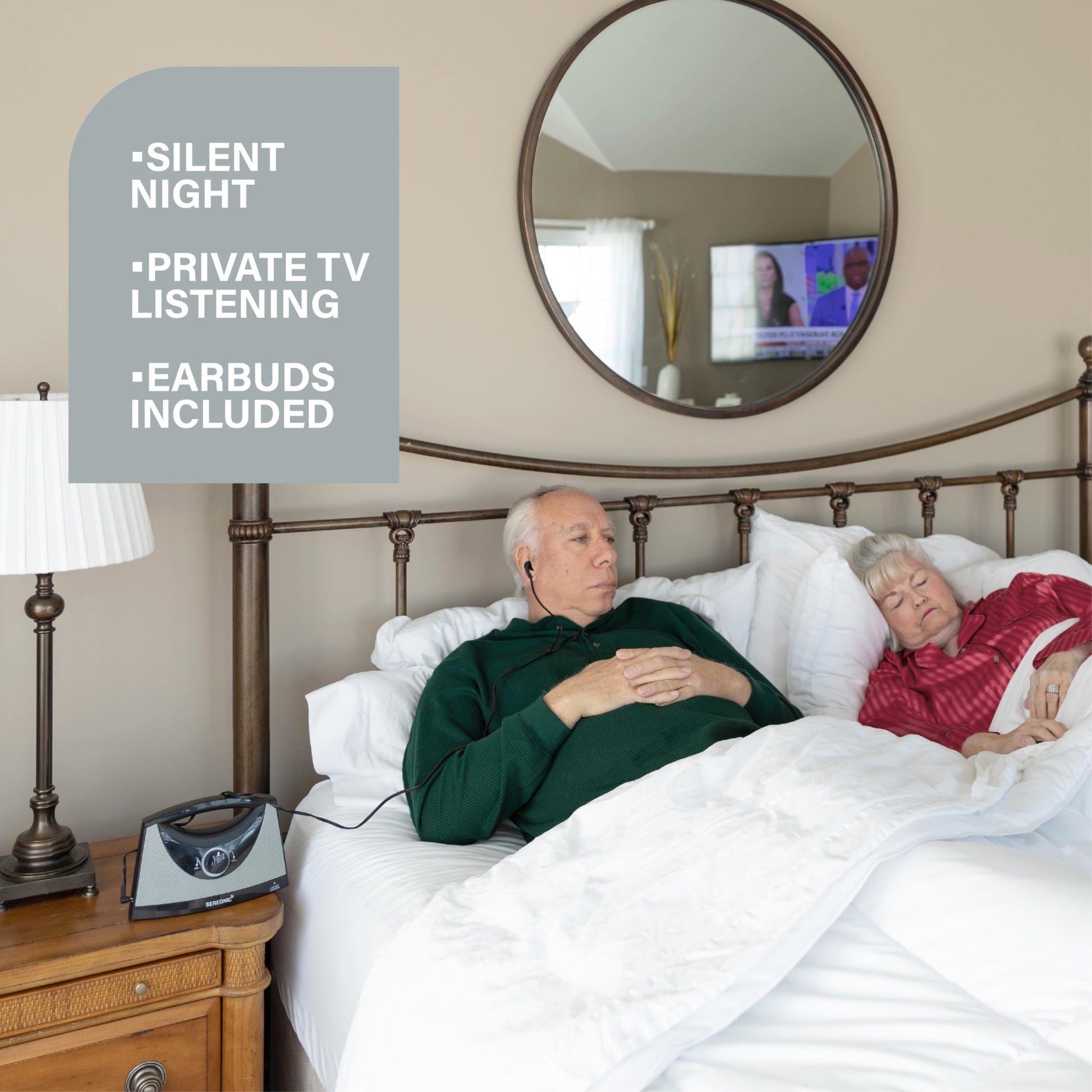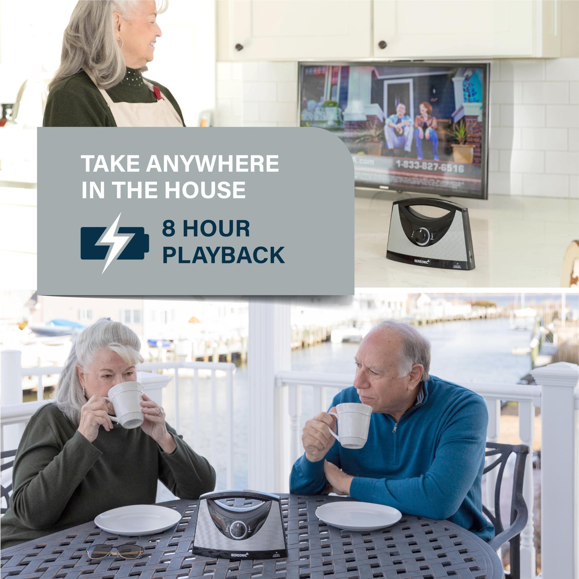 - Portable and Powerful: Use in your den, bedroom, kitchen, or outdoors. Enjoy private TV listening with included earbuds.