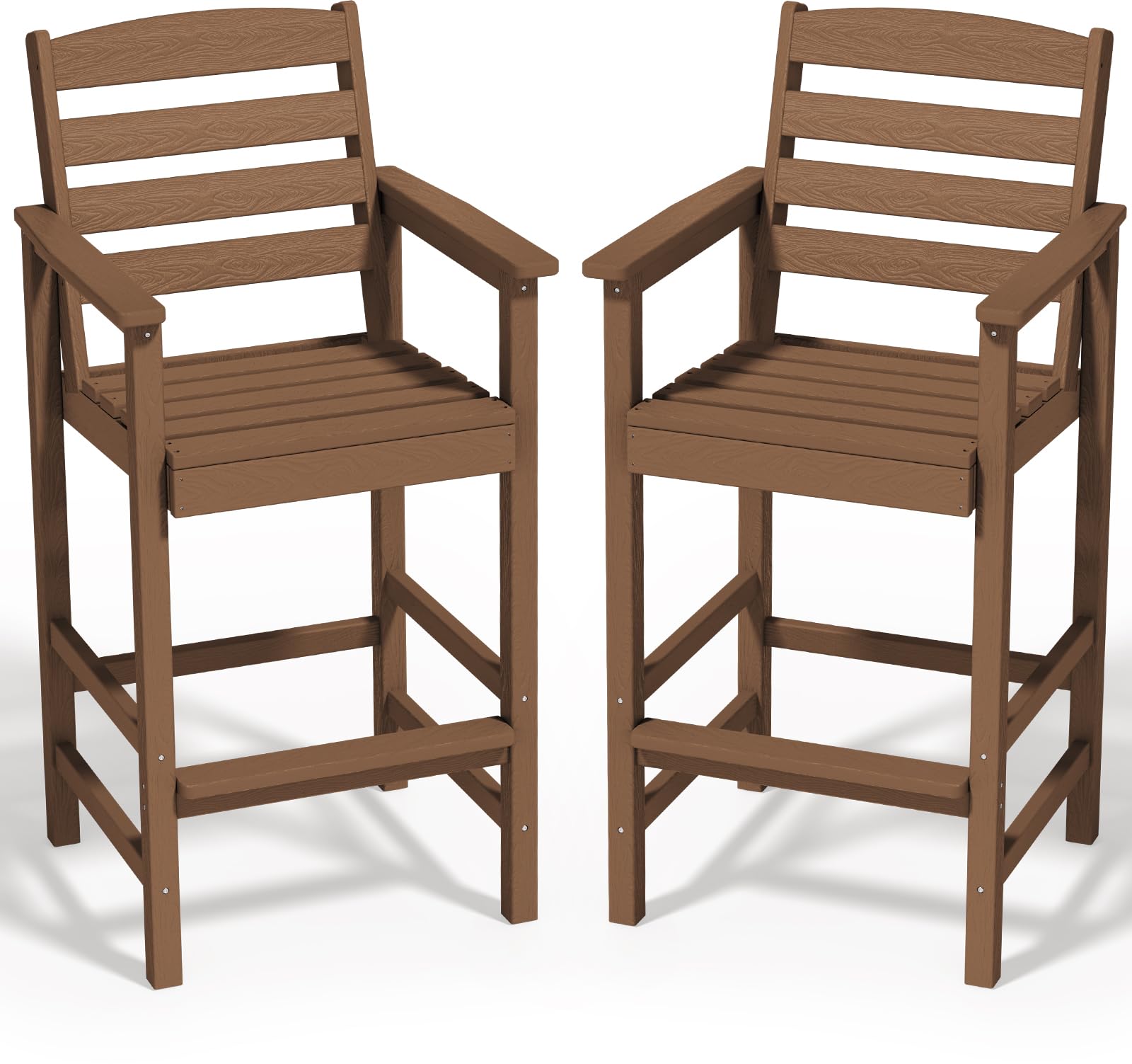 SERWALL Tall Adirondack Chairs Set of 2, Balcony Adirondack Chairs Set, Outdoor Bar Height Barstools Chair Set for Bistro, Poolside, Garden, Brown