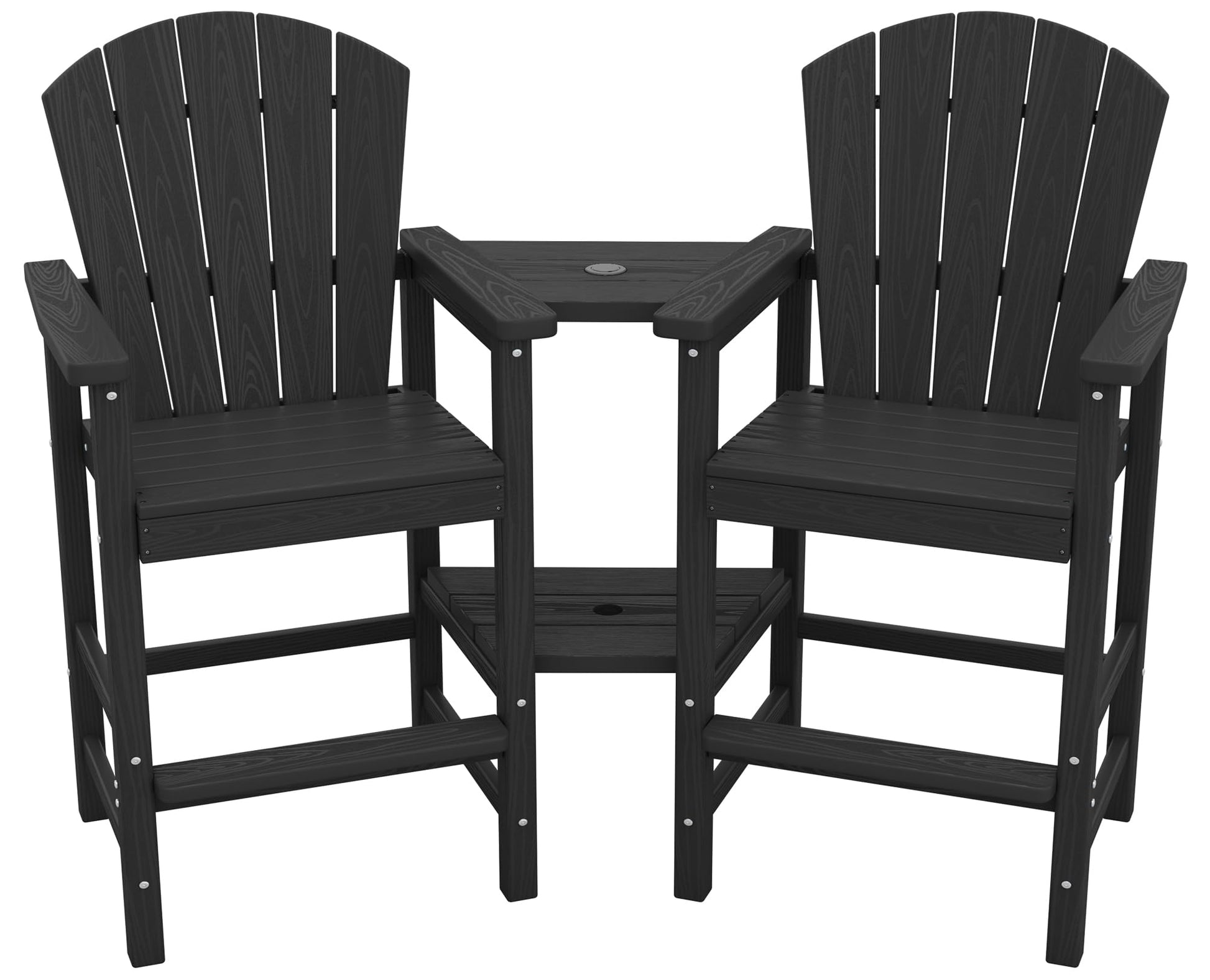 SERWALL Tall Adirondack Chairs Set of 2 with Double Layer Connecting Tray, HDPE Bar Height Outdoor Chairs, Wood-Like Adirondack Bar Stools for Patio, Balcony, Porch, Black
