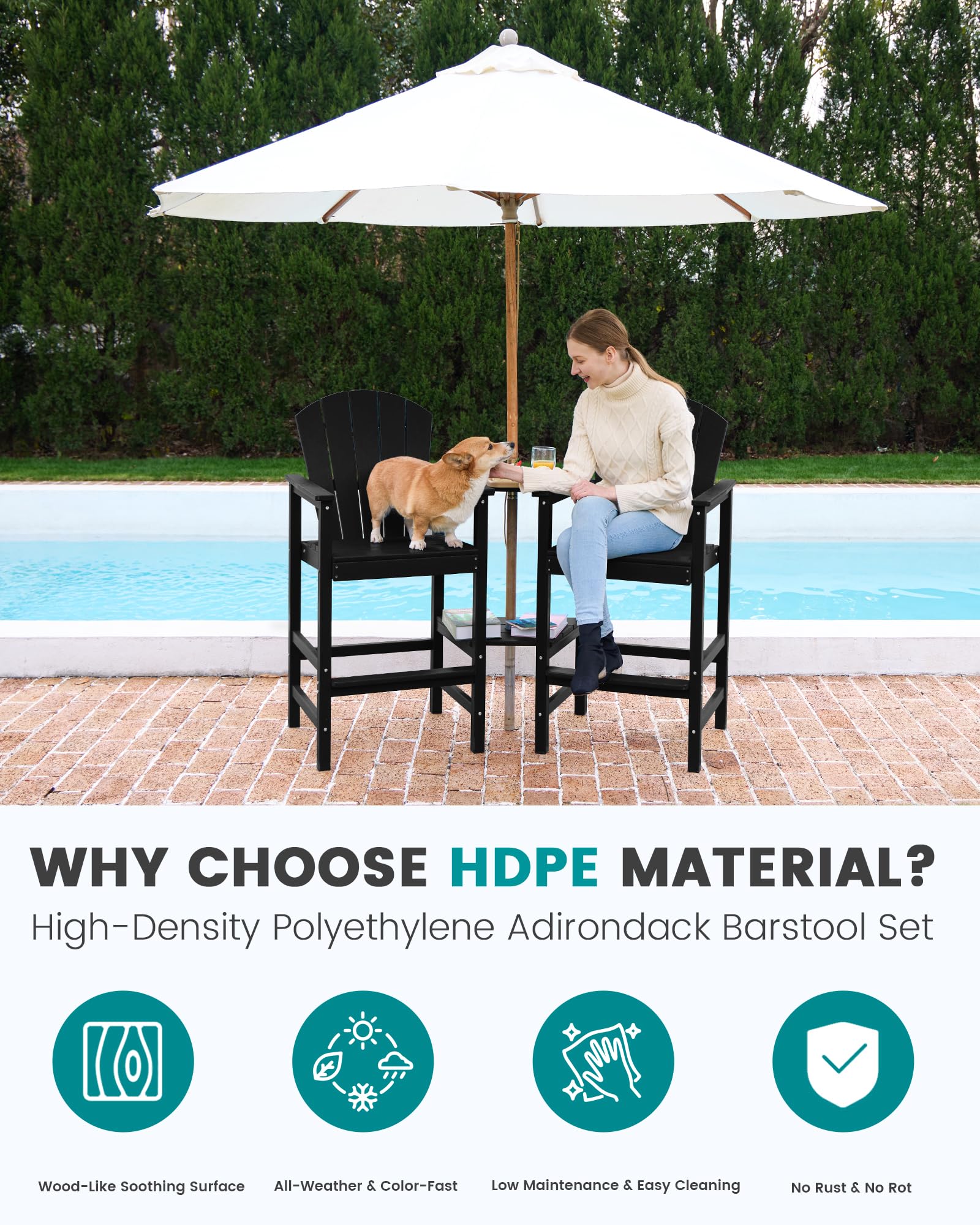 - Widened Patio Stools: Elevate your outdoor experience with our widened tall adirondack chairs(W24.5' x D20.5' x H47.6'), designed for enhanced comfort and a splash of vibrant color in your backyard