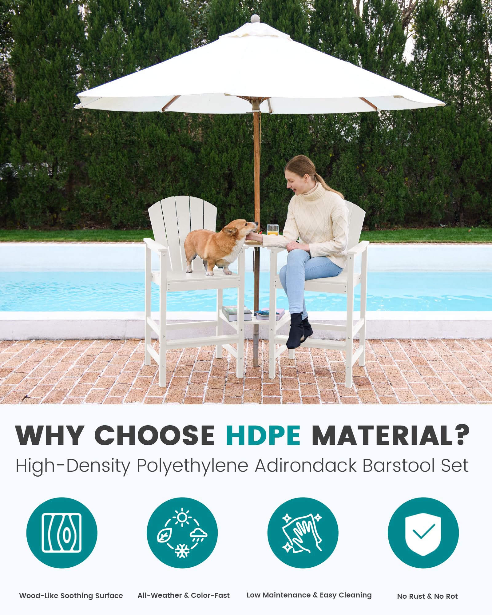 - Widened Patio Stools: Elevate your outdoor experience with our widened tall adirondack chairs(W24.5' x D20.5' x H47.6'), designed for enhanced comfort and a splash of vibrant color in your backyard