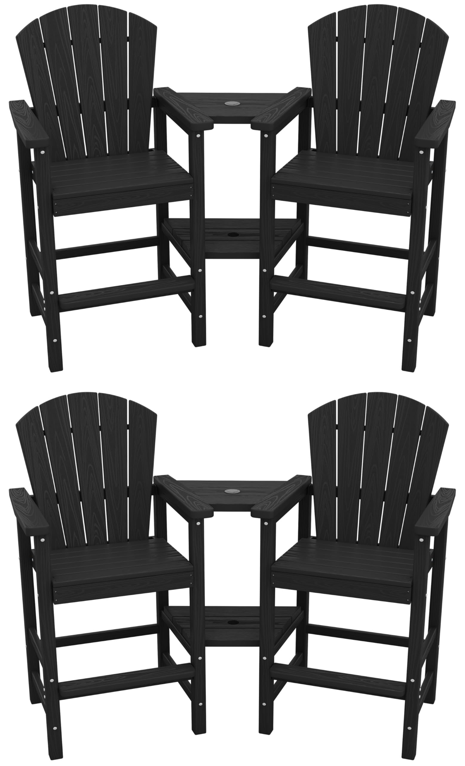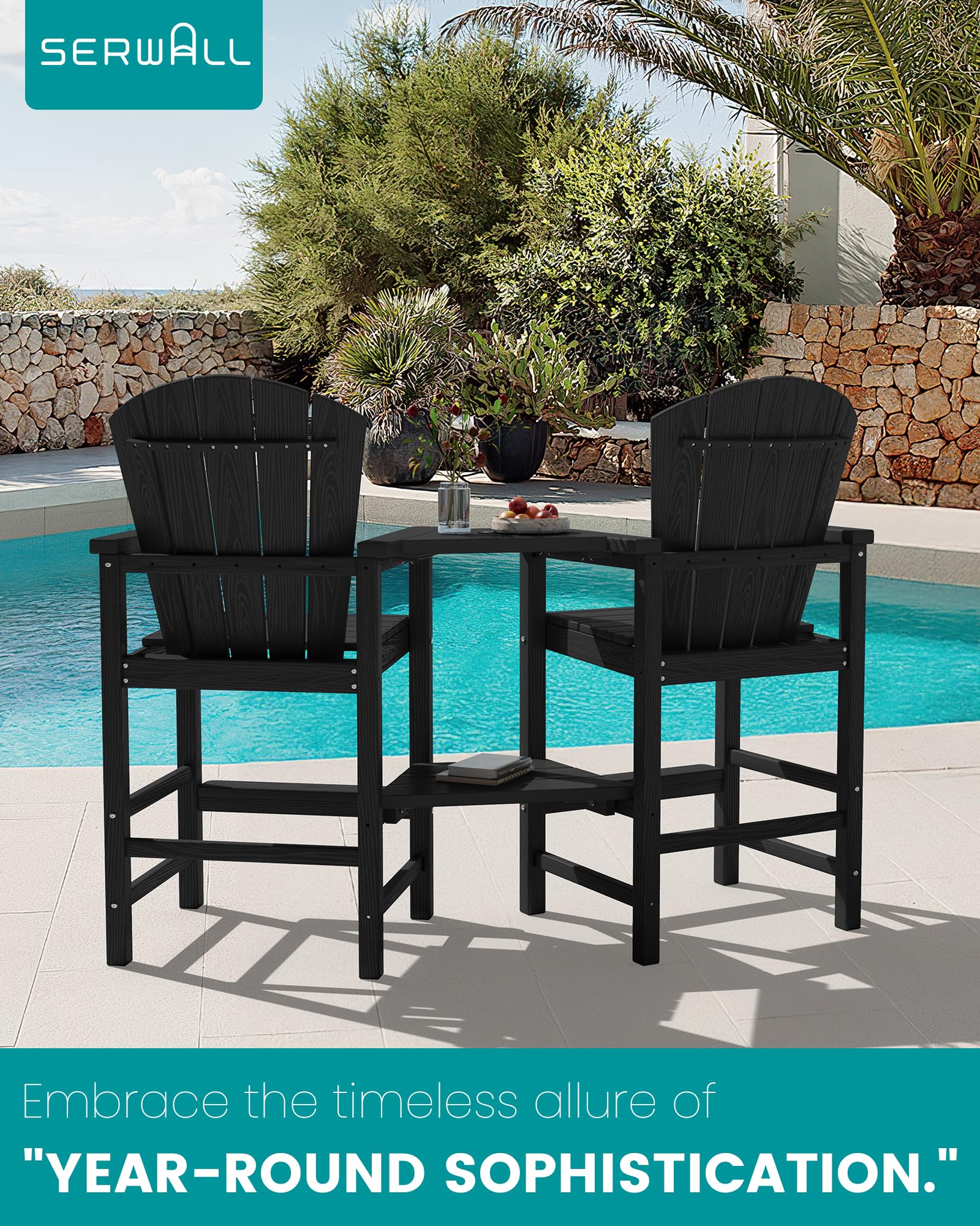 SERWALL Tall Adirondack Chairs Set of 4 with Double Layer Connecting Tray, HDPE Bar Height Outdoor Chairs, Wood-Like Adirondack Bar Stools for Patio, Balcony, Porch, Black